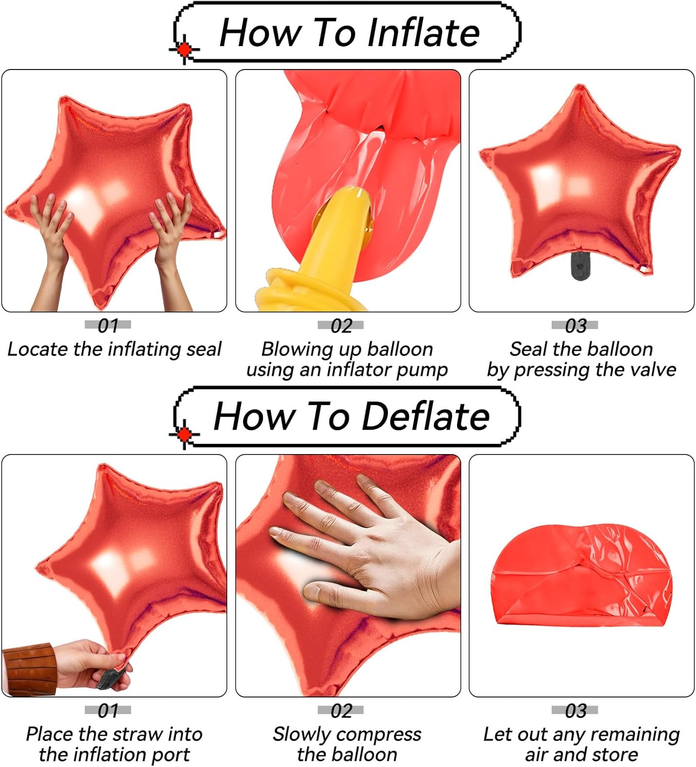 Red Blue Silver Star Balloons, 16 Pcs 22/18/10 Inch Star Foil Mylar Balloons, Explosion Cone Star-Shape Four-Pointed Balloon for Kids Boy Birthday Graduation Wedding Baby Shower Hero Party Decoration