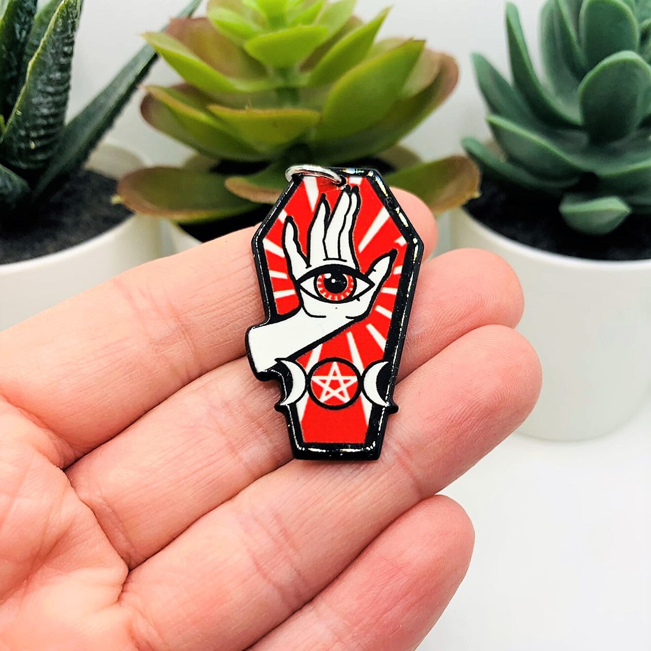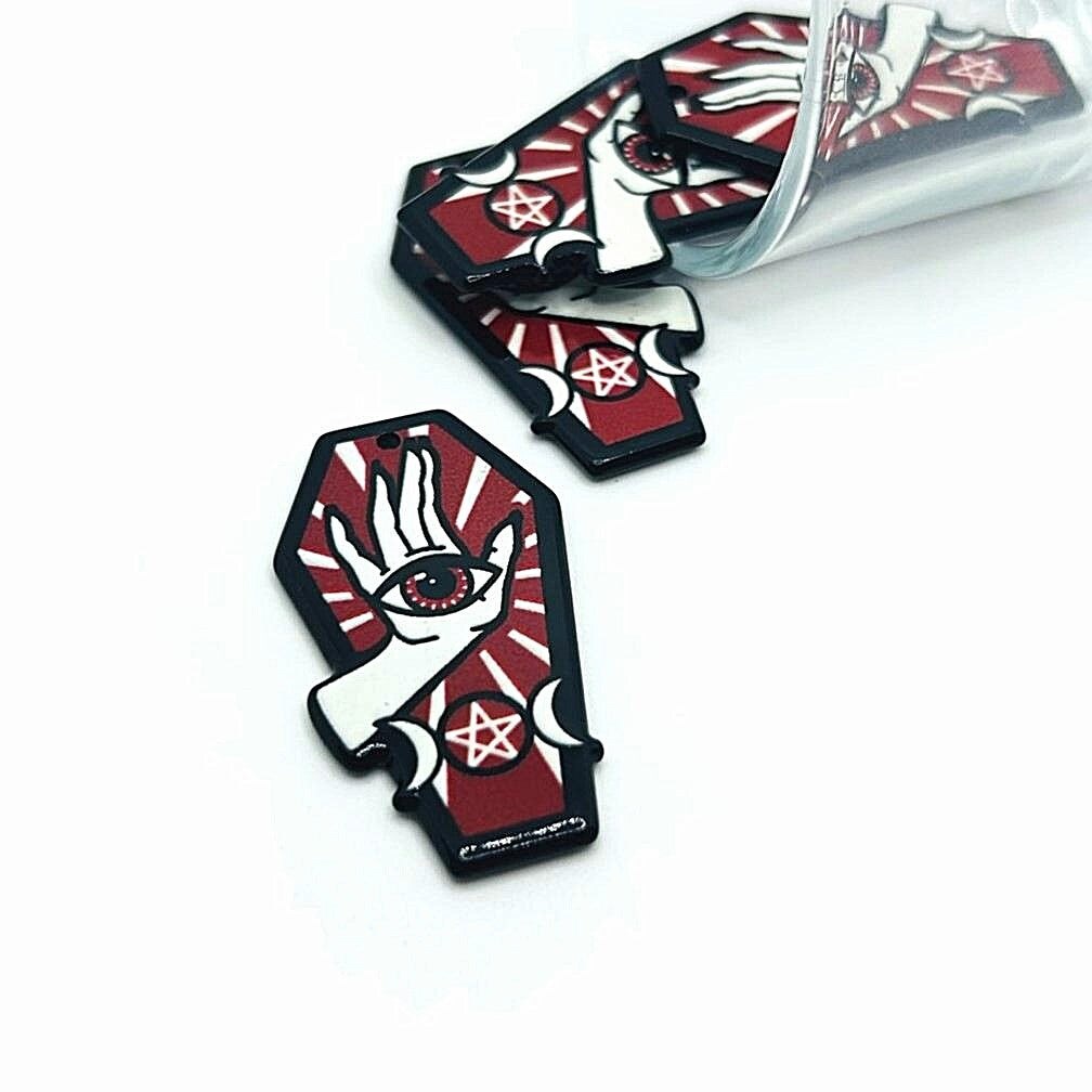 Red Coffin with Seeing Eye Charms, 43x23.5mm