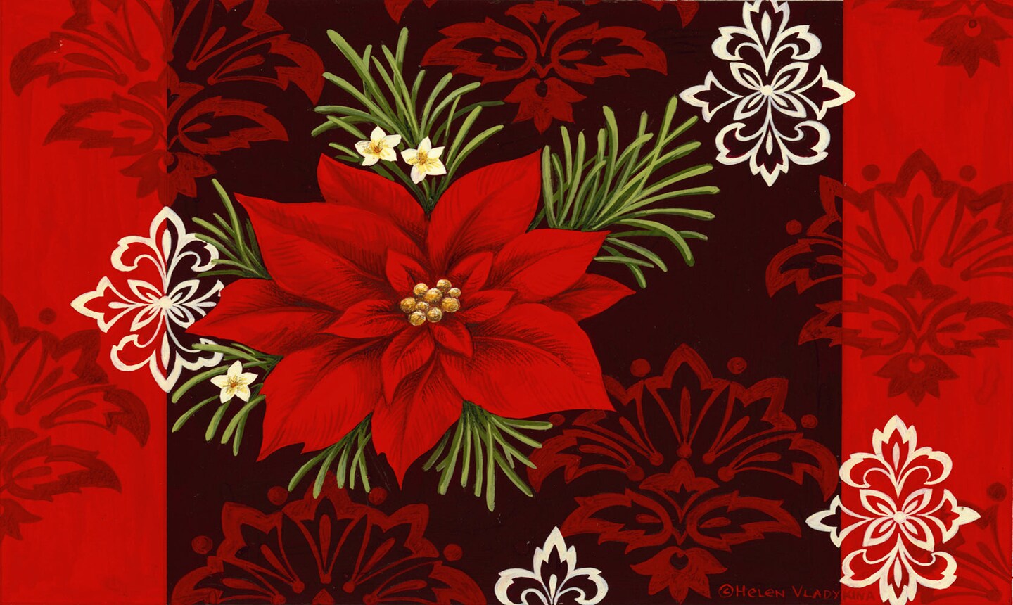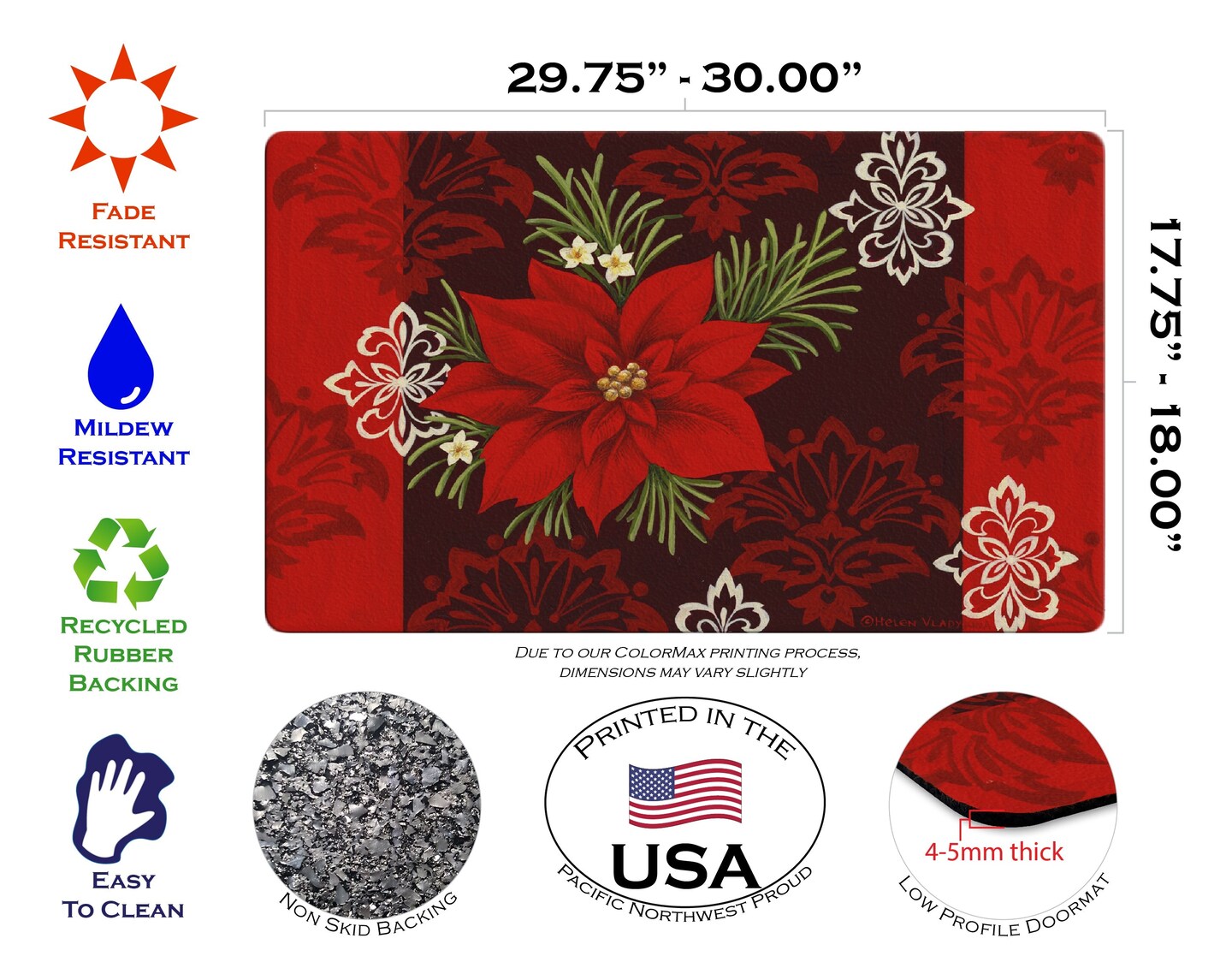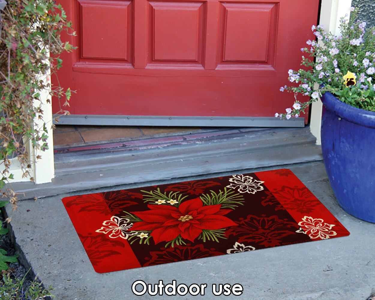 Red Damask Door Mat (18 x 30")