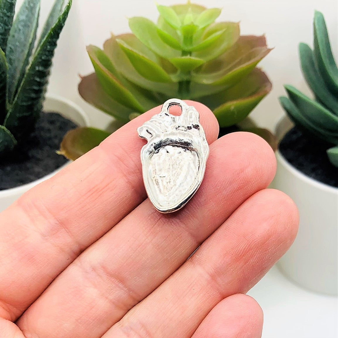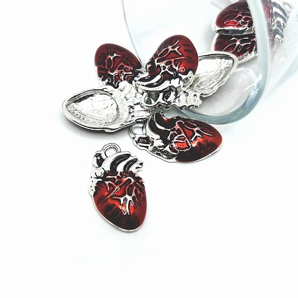 Red Enamel Anatomical Human Heart Charms, 24.5x15mm