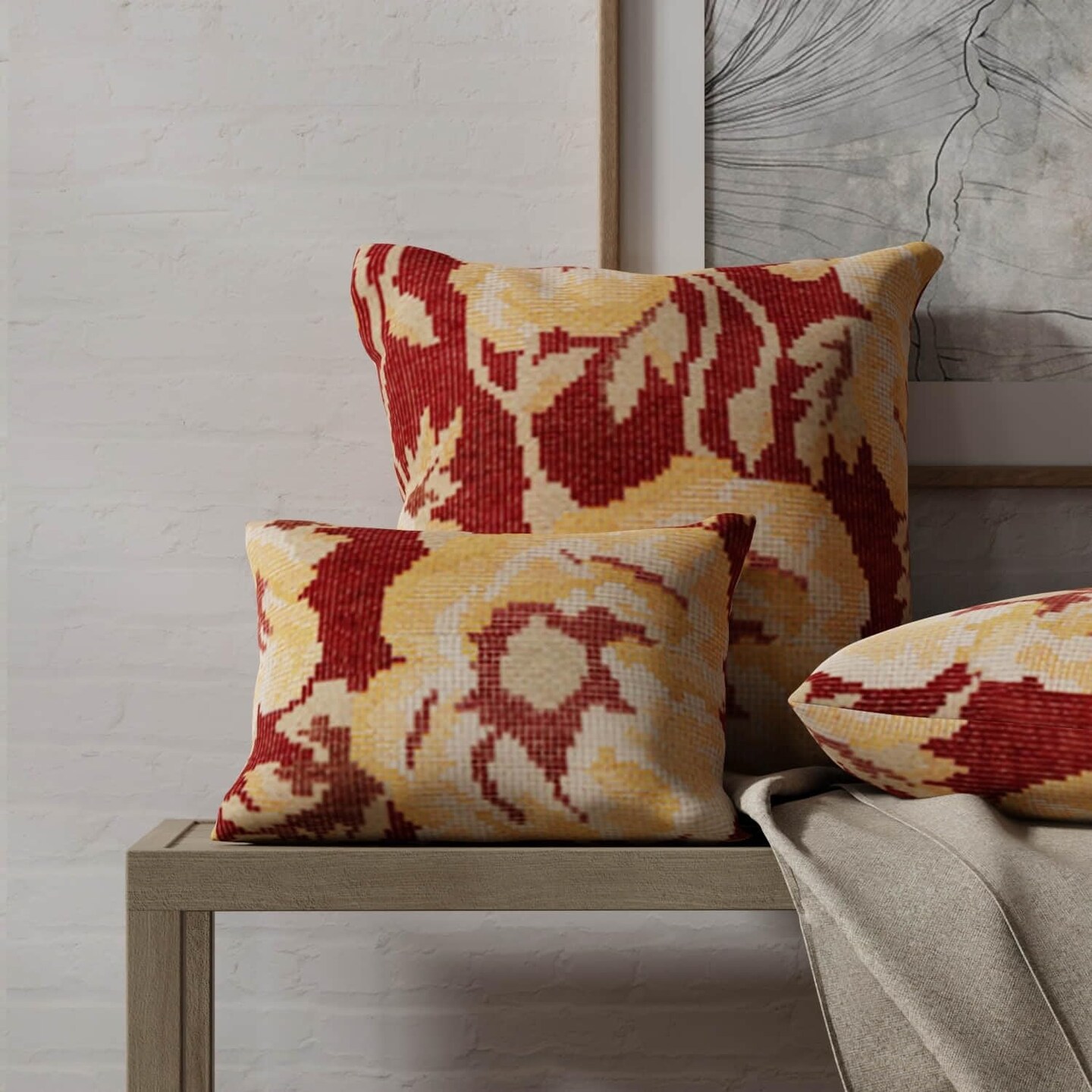 Red Floral Woven Pattern Upholstery Fabric by The Yard - SKU: Beverly Wine