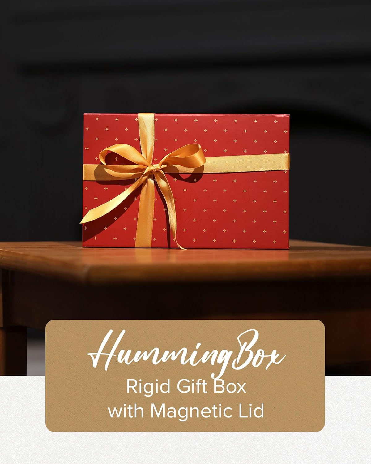 Red & Gold Gift Box 9.5 × 6 × 3 Inches with Magnetic Lid, Ribbon, Card & Packing Paper – Luxury Gift Box for Christmas, Weddings, Birthdays, and Presents (Red S)
