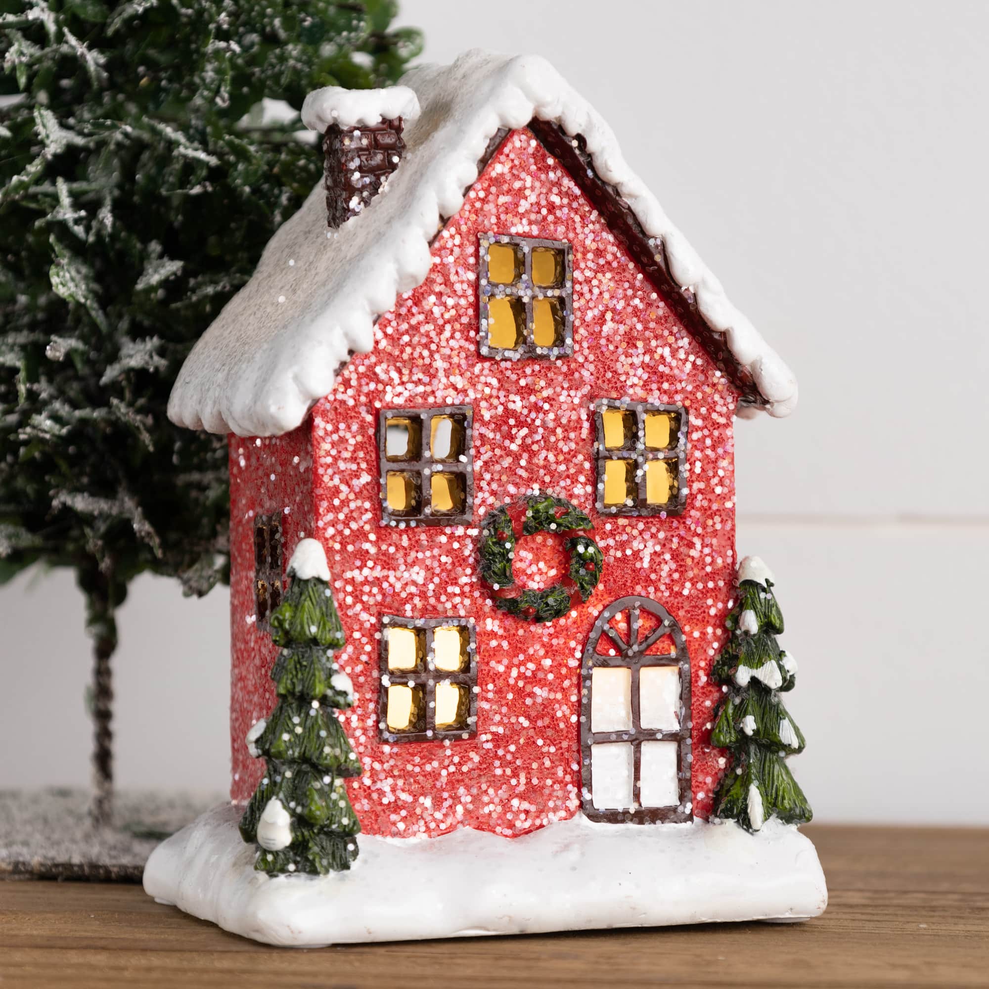 Red & Green Winter Village Houses Lighted Tabletop Town Décor Set, 5.75" & 6"