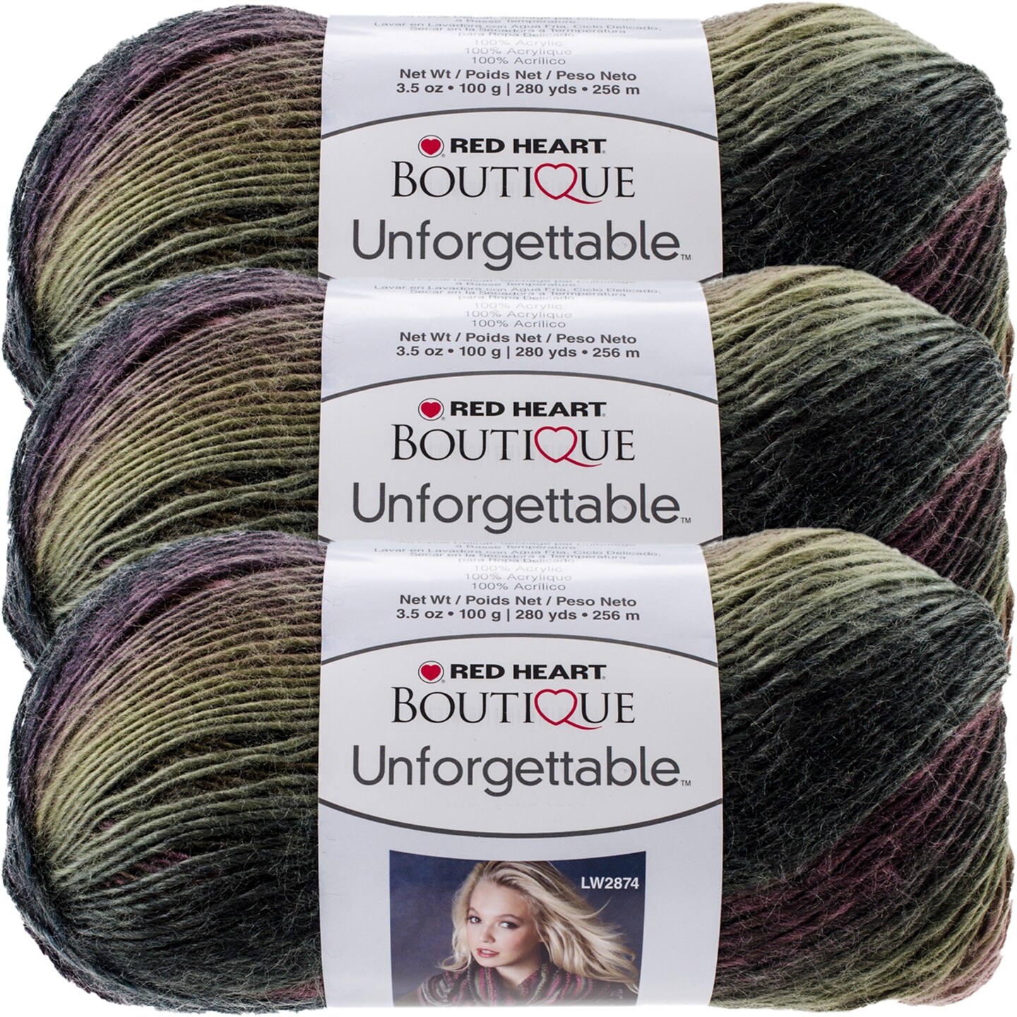 Red Heart Boutique Unforgettable Echo Yarn - 3 Pack of 100g/3.5oz - Acrylic - 4 Medium (Worsted) - 270 Yards - Knitting/Crochet