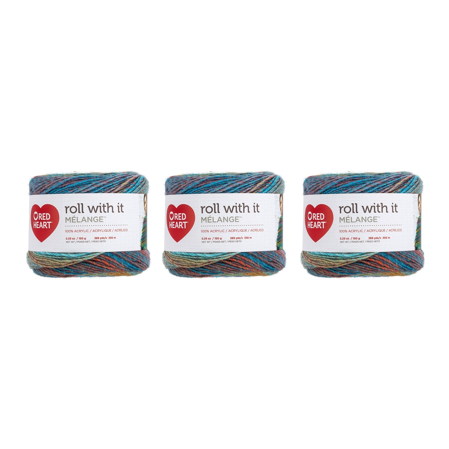 Red Heart Roll With It Melange Paparazzi Yarn - 3 Pack of 150g/5.3oz - Acrylic - 4 Medium (Worsted) - 389 Yards - Knitting/Crochet