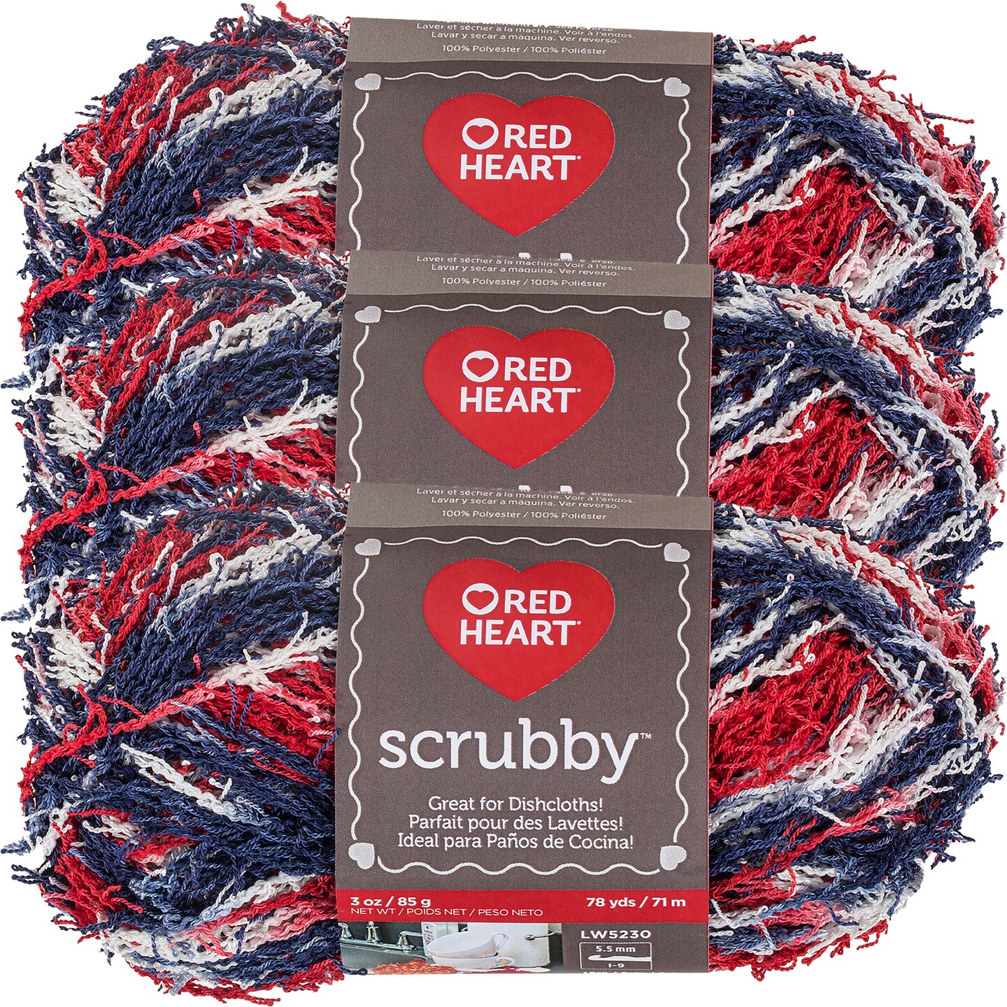 Red Heart Scrubby Americana Yarn - 3 Pack of 85g/3oz - Polyester - 4 Medium (Worsted) - 78 Yards - Knitting/Crochet