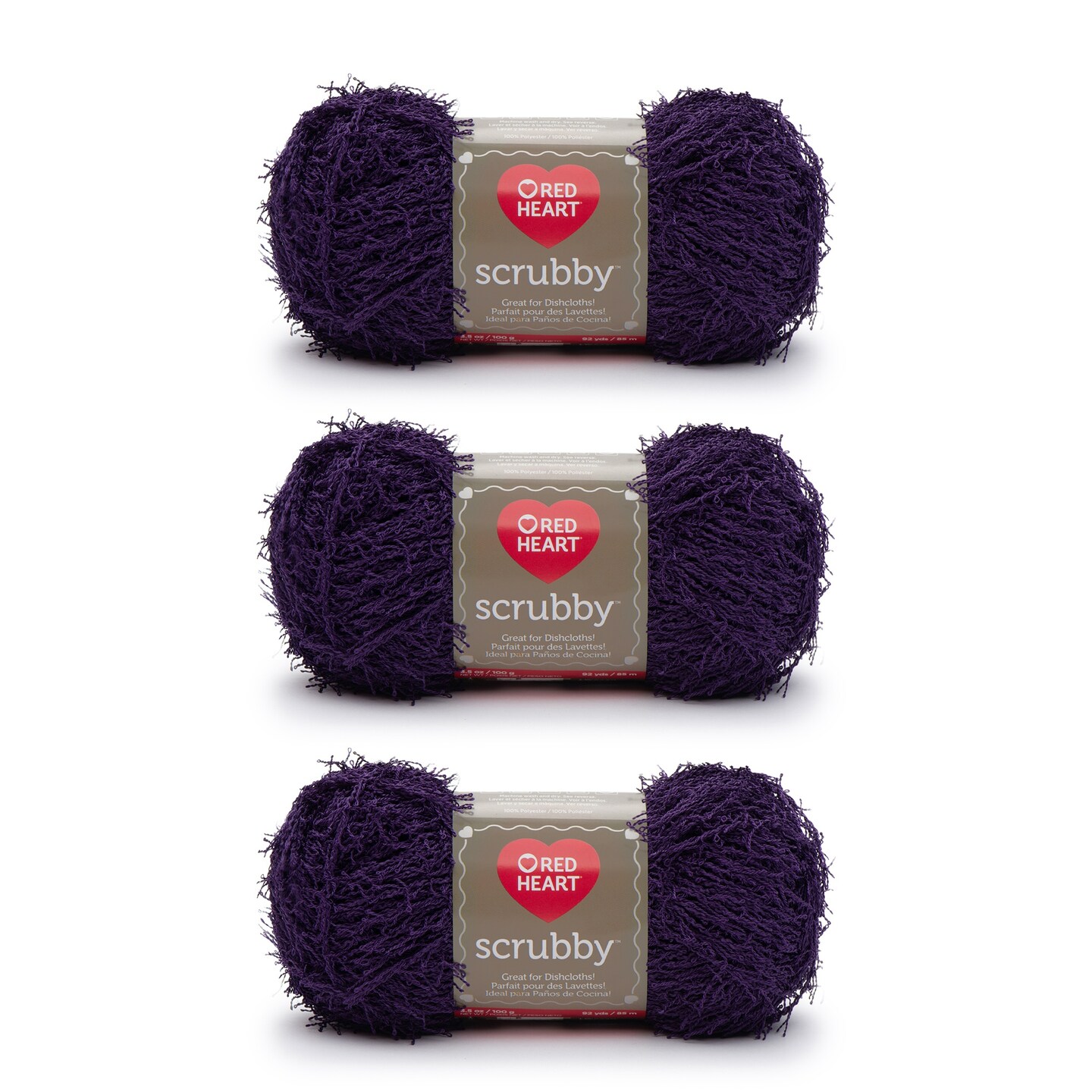 Red Heart Scrubby Grape Yarn - 3 Pack of 100g/3.5oz - Polyester - 4 Medium (Worsted) - 92 Yards - Knitting/Crochet
