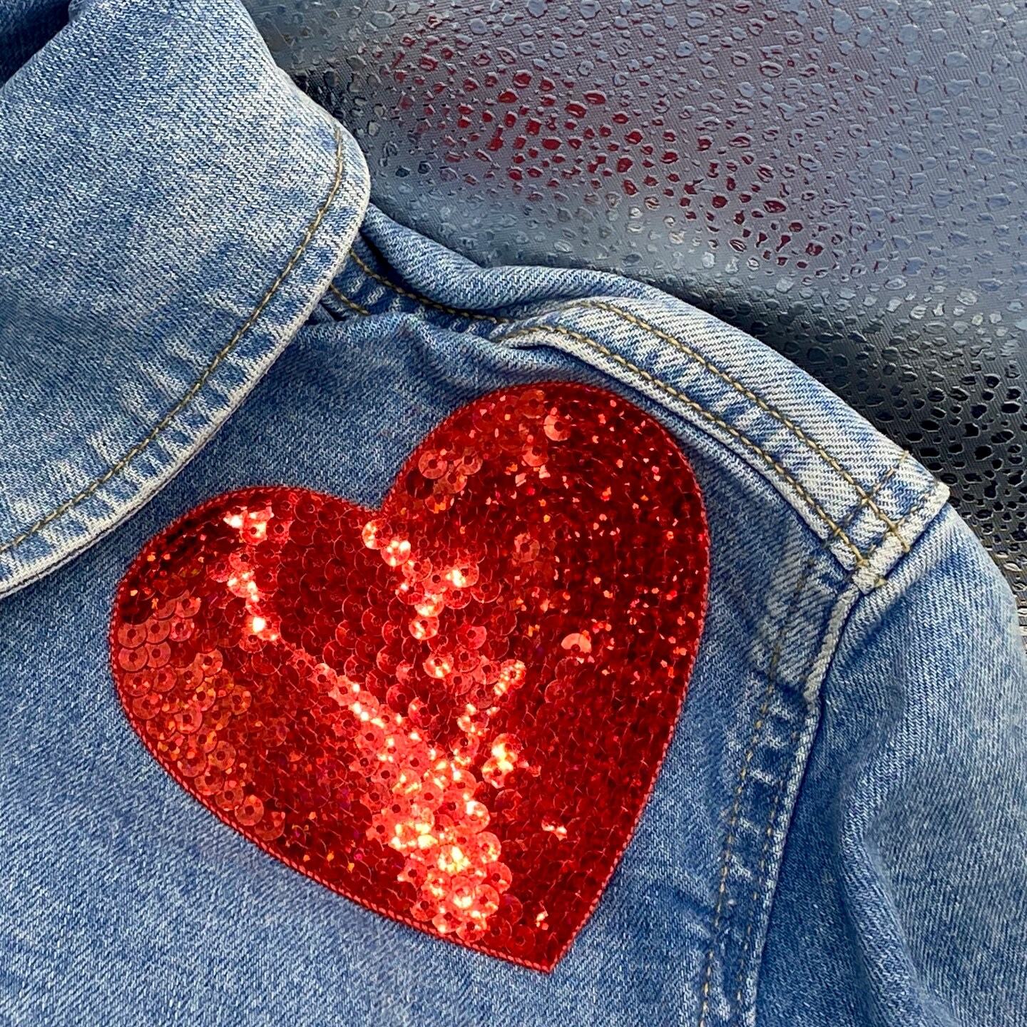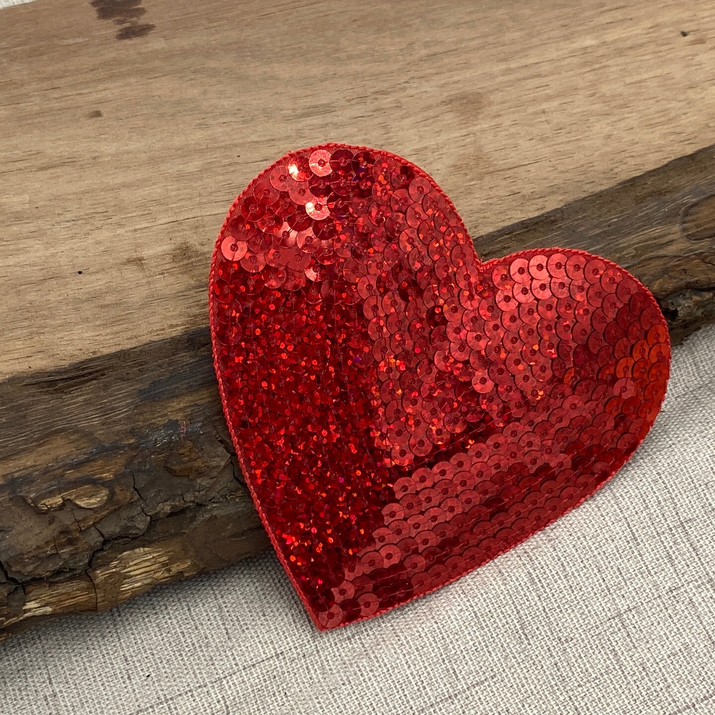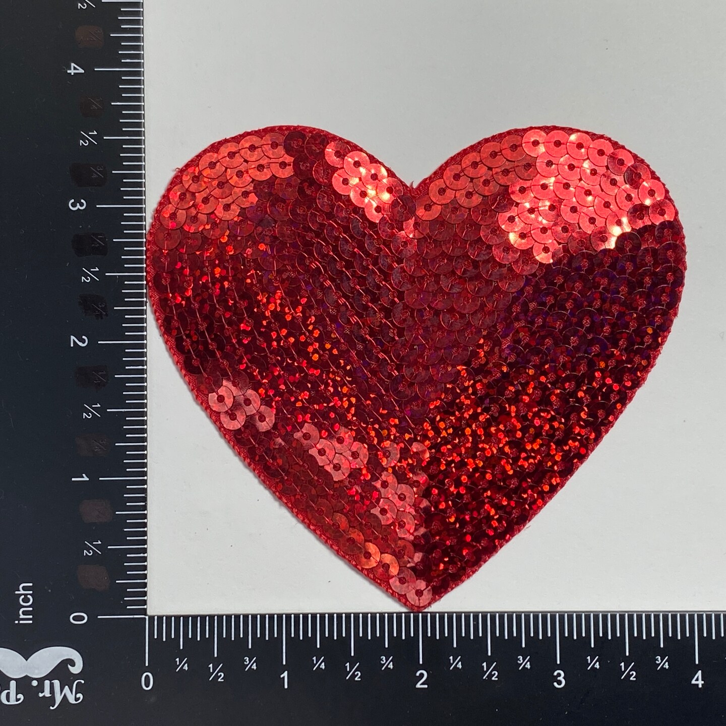Red Heart Sequin Patch - 4 inch - Embroidered, Iron on Patch