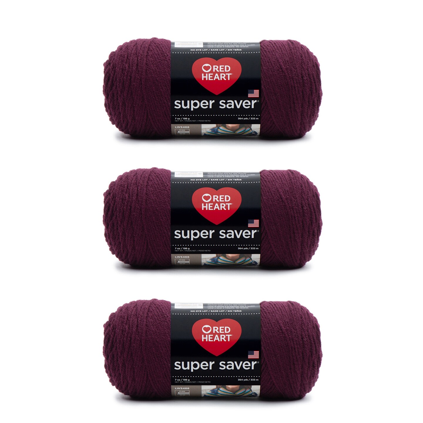 Red Heart Super Saver Claret Yarn - 3 Pack of 198g/7oz - Acrylic - 4 Medium (Worsted) - 364 Yards - Knitting/Crochet