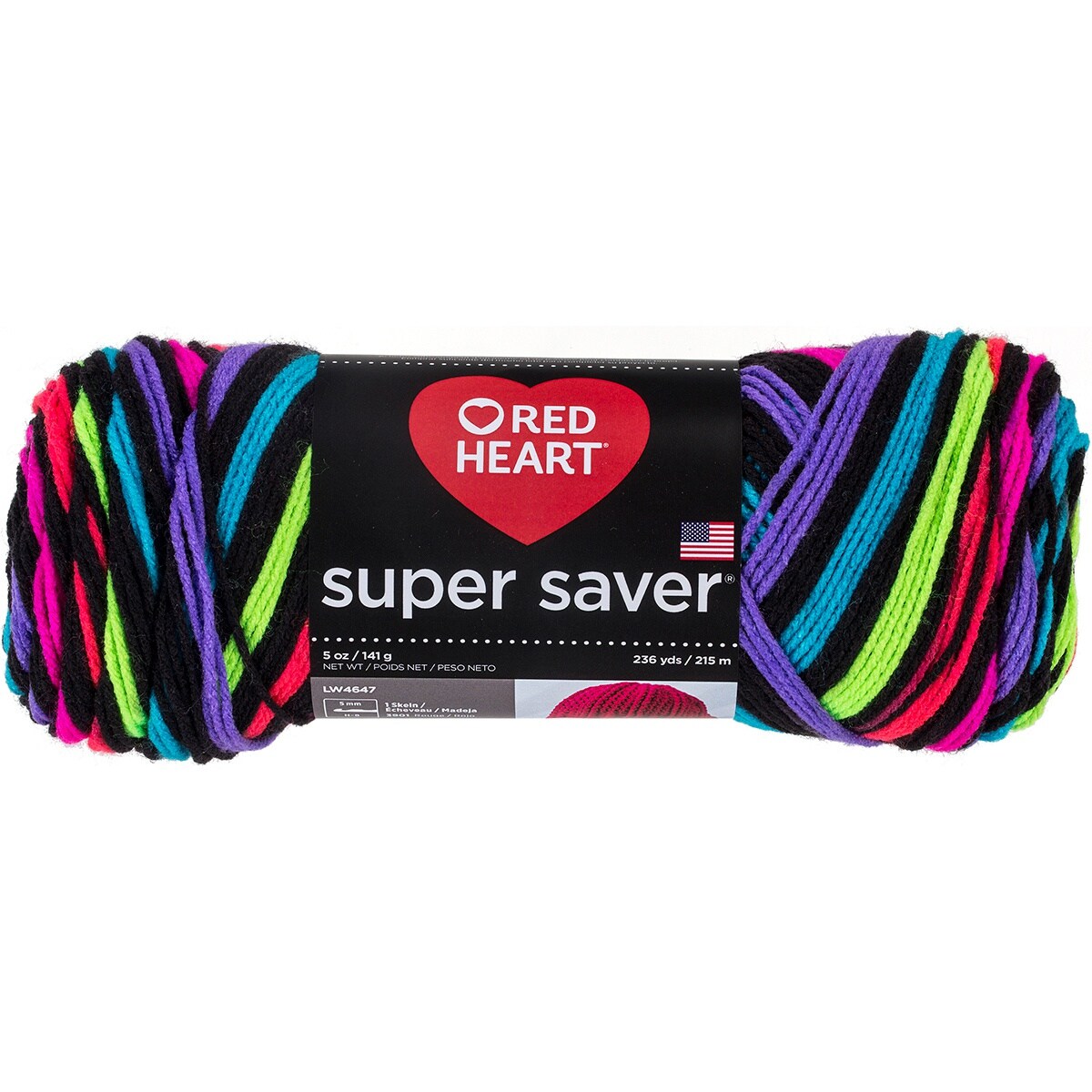 Red Heart Super Saver Neon Stripes Yarn - 3 Pack of 141g/5oz - Acrylic - 4 Medium (Worsted) - 236 Yards - Knitting/Crochet