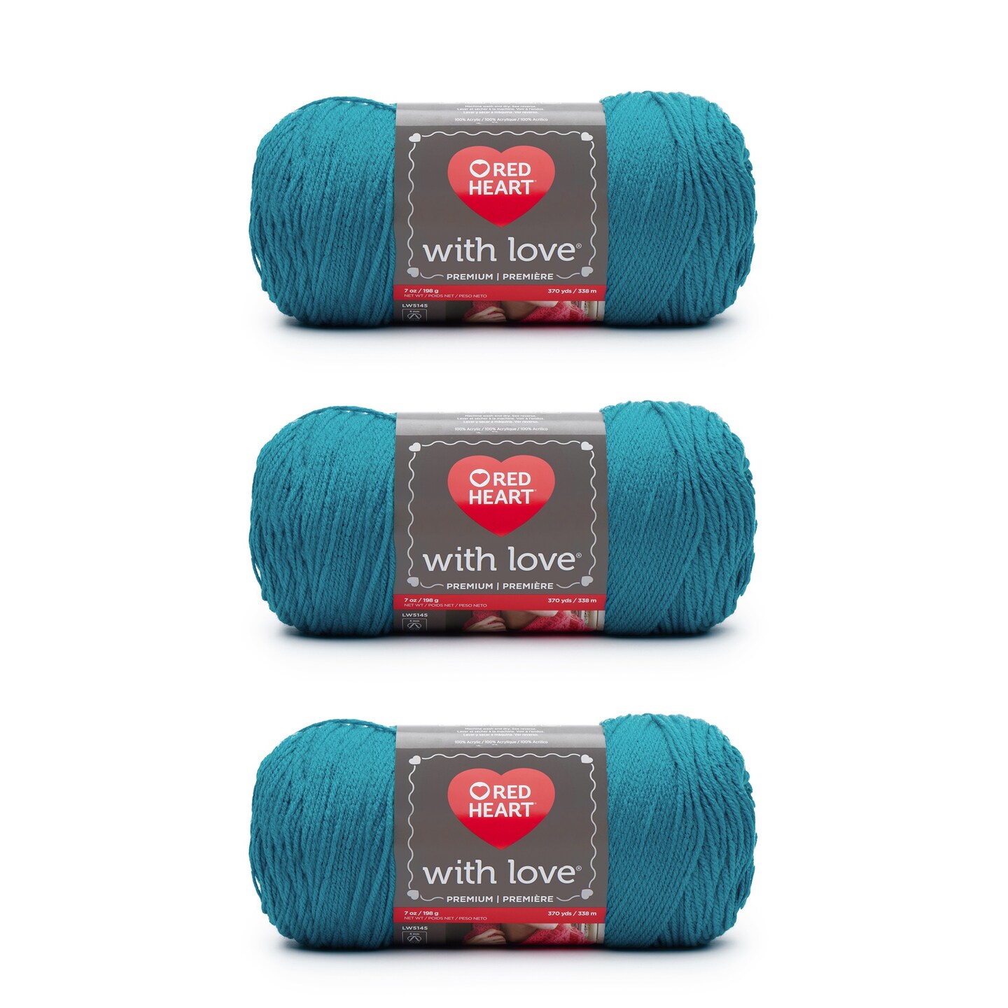 Red Heart With Love Blue Hawaii Yarn - 3 Pack of 198g/7oz - Acrylic - 4 Medium (Worsted) - 370 Yards - Knitting/Crochet