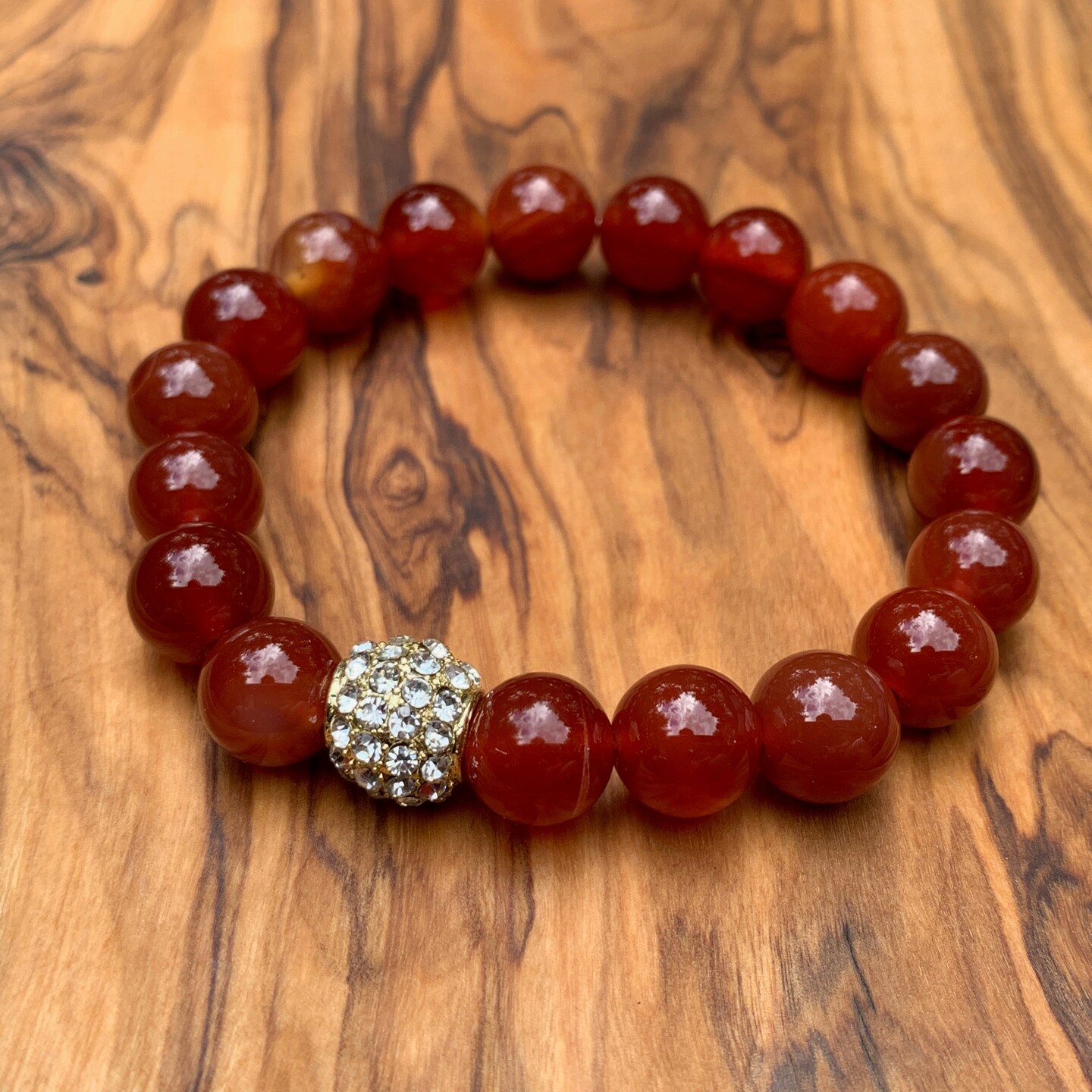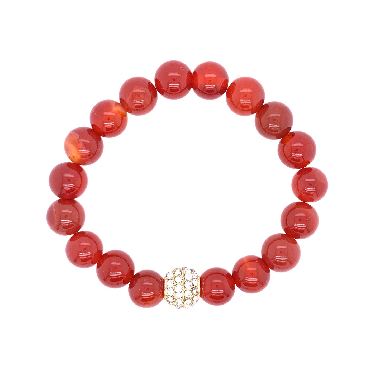 Red Jade Bracelet with Rhinestone Pavé Bead