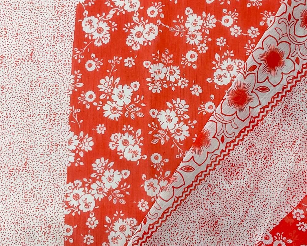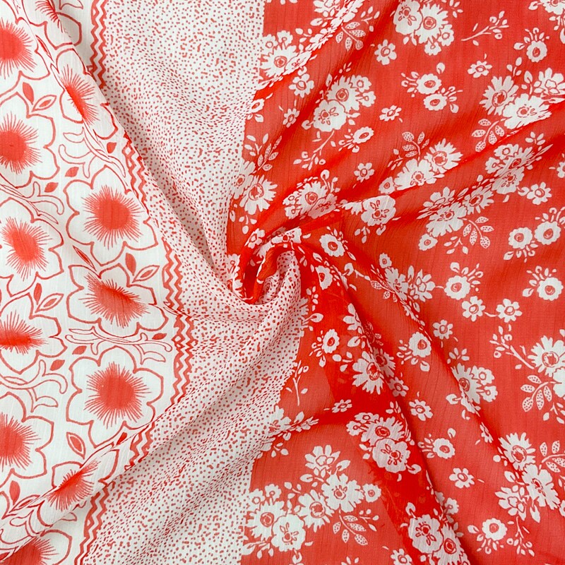 Red Orange Poly Floral Printed Crinkle Yoryu Chiffon Woven Fabric By the Yard