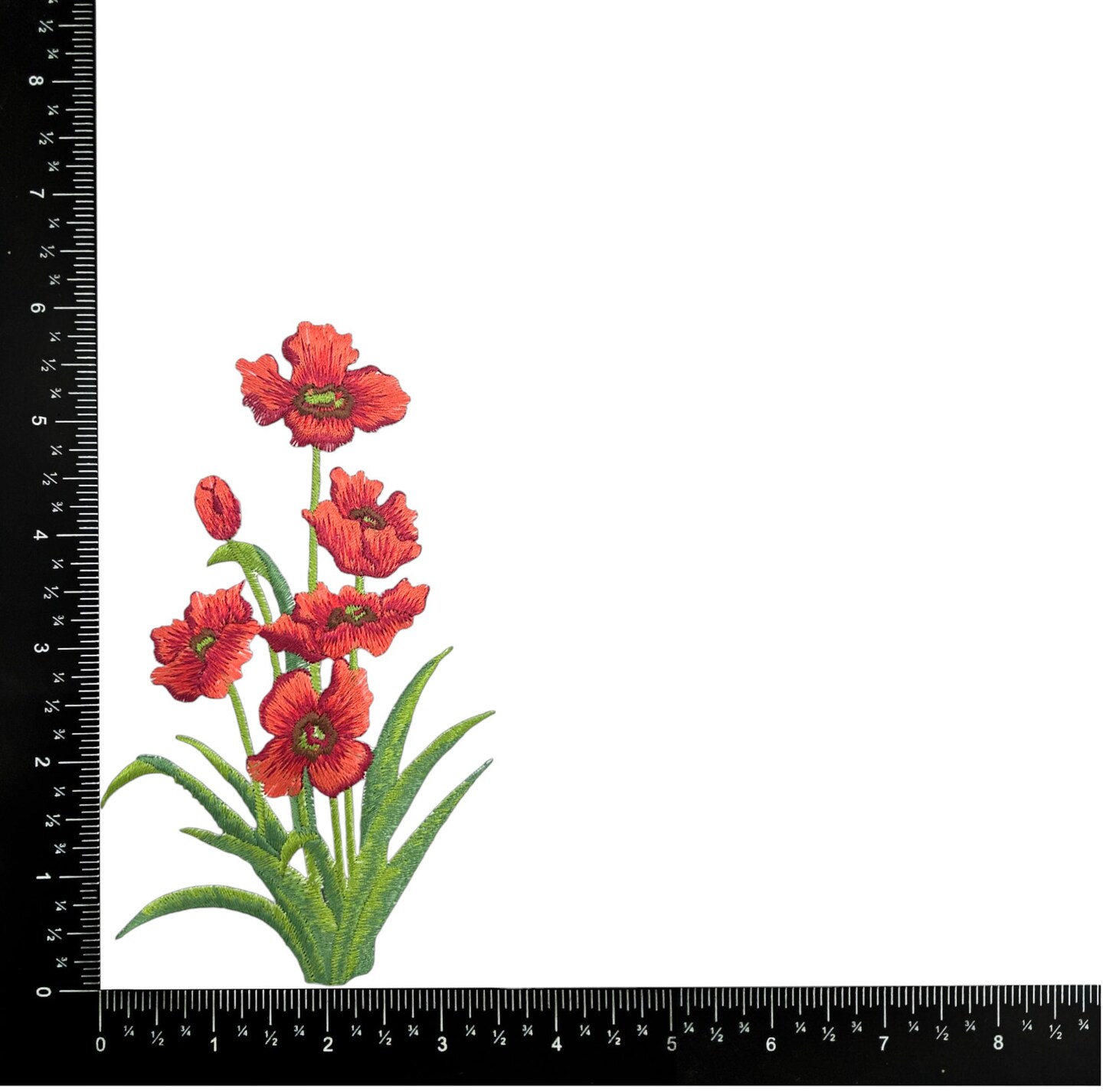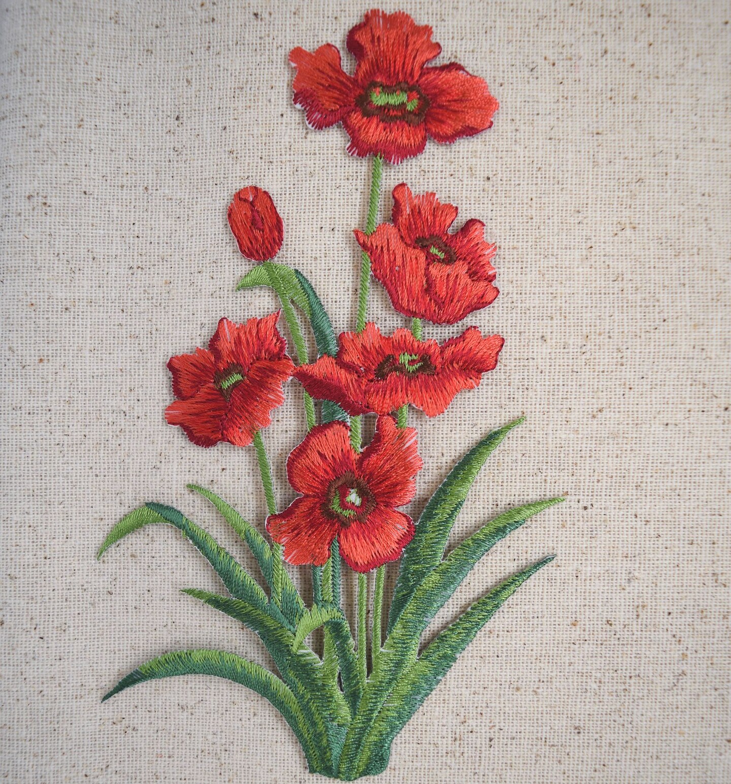 Red Poppy Group, Flowers, Poppies, Embroidered, Iron on Patch