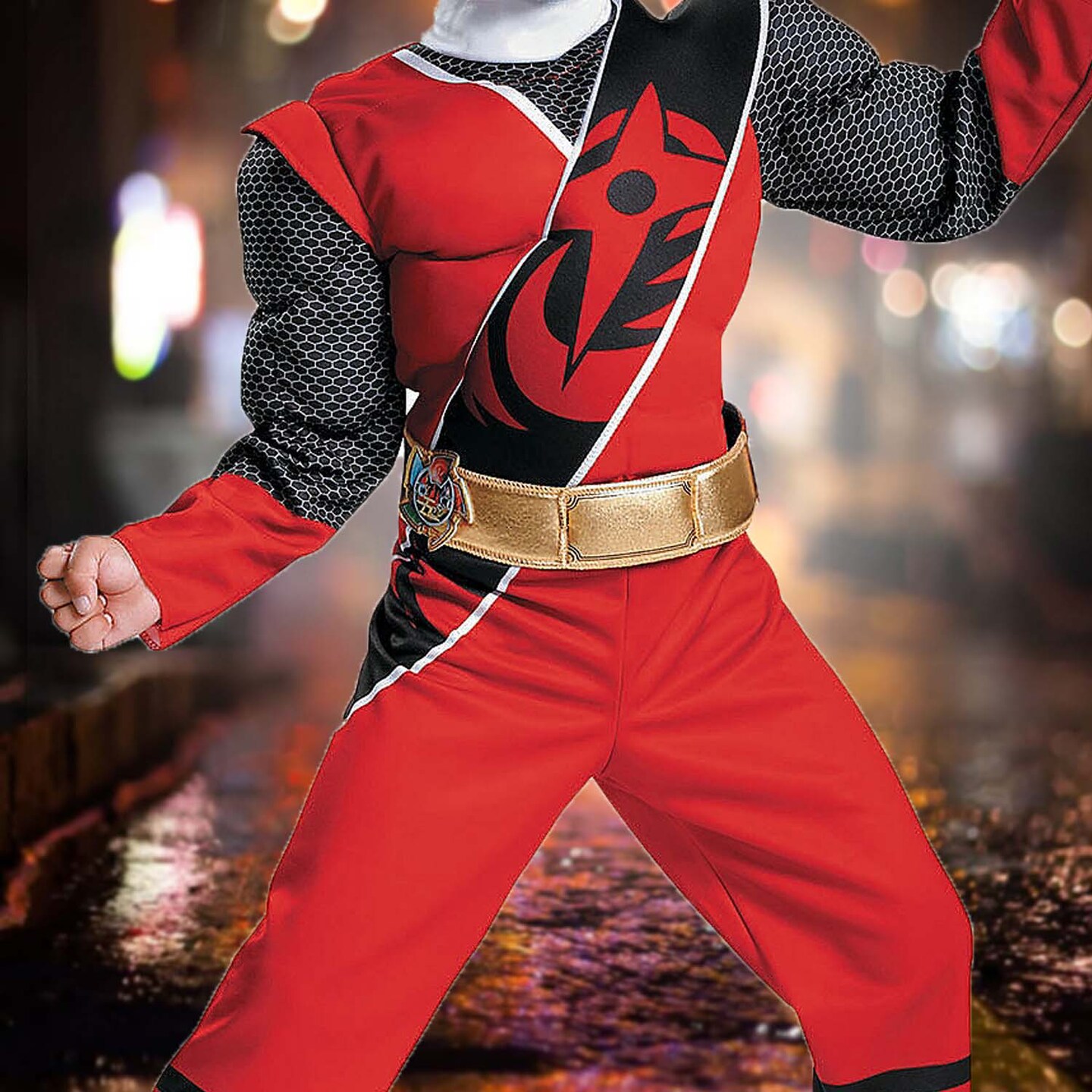 Red Ranger N Steel Costume Toddler Muscle Jumpsuit with Headpiece and Attached Belt