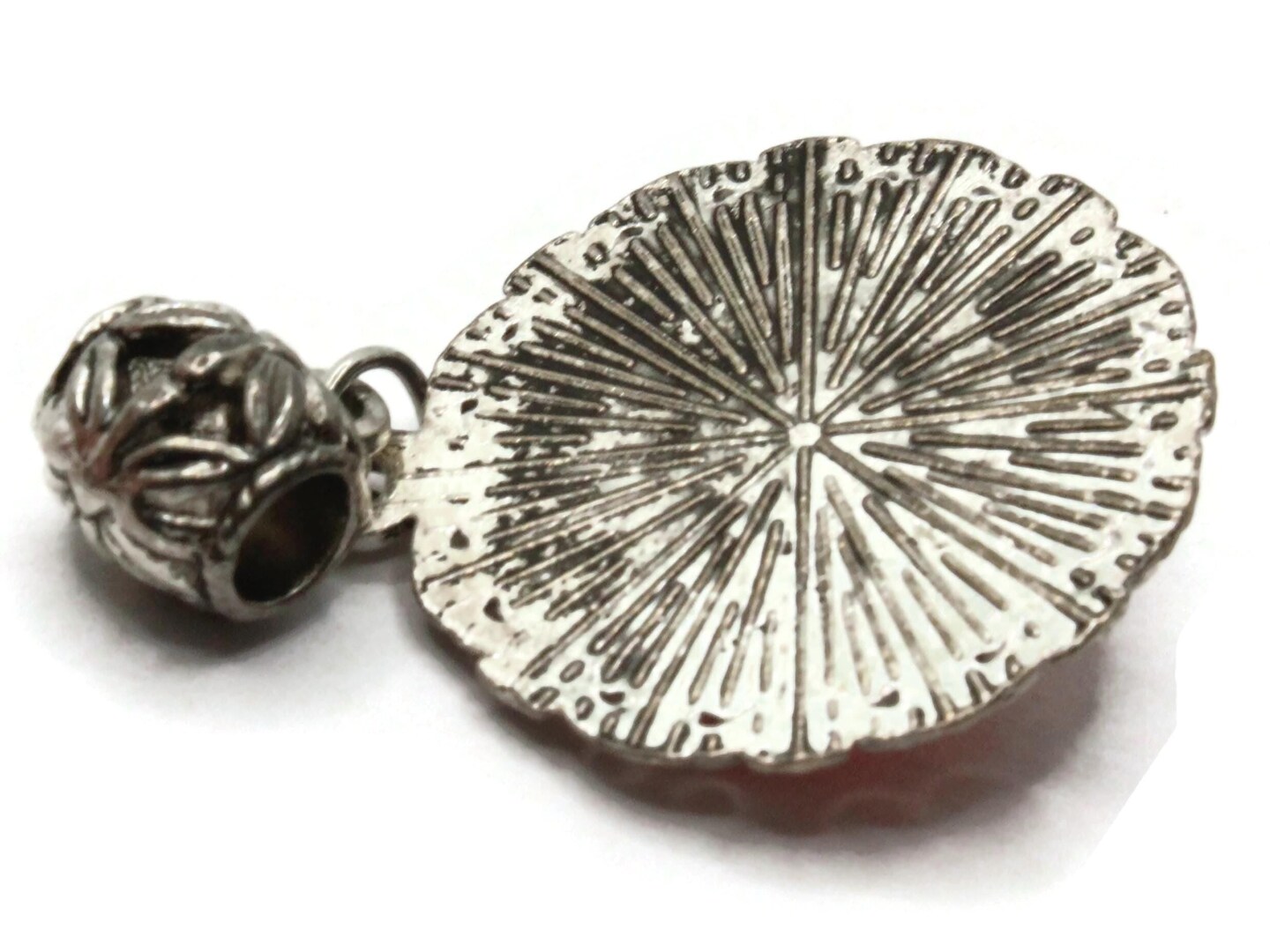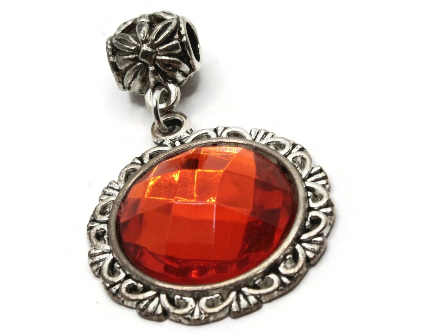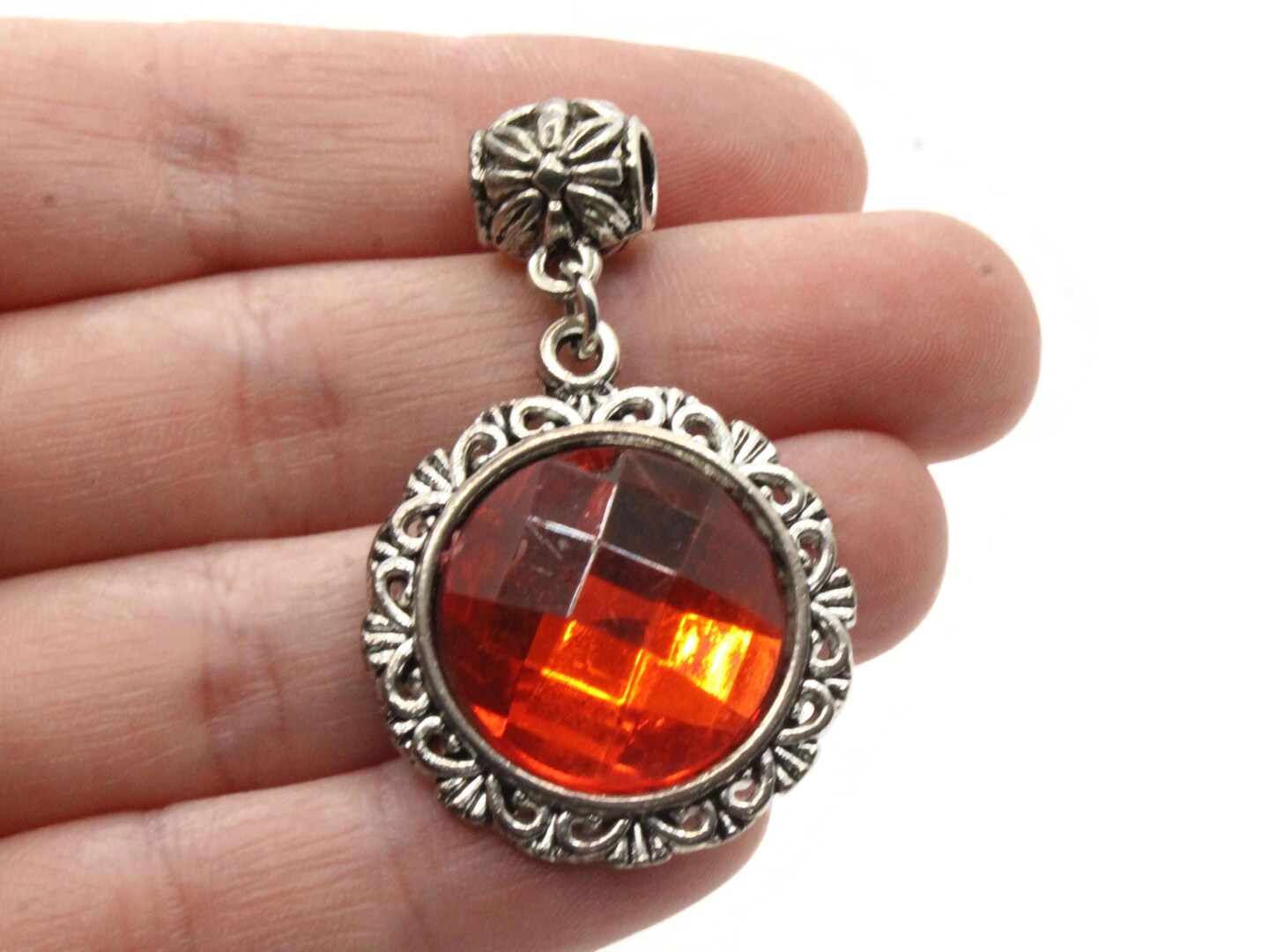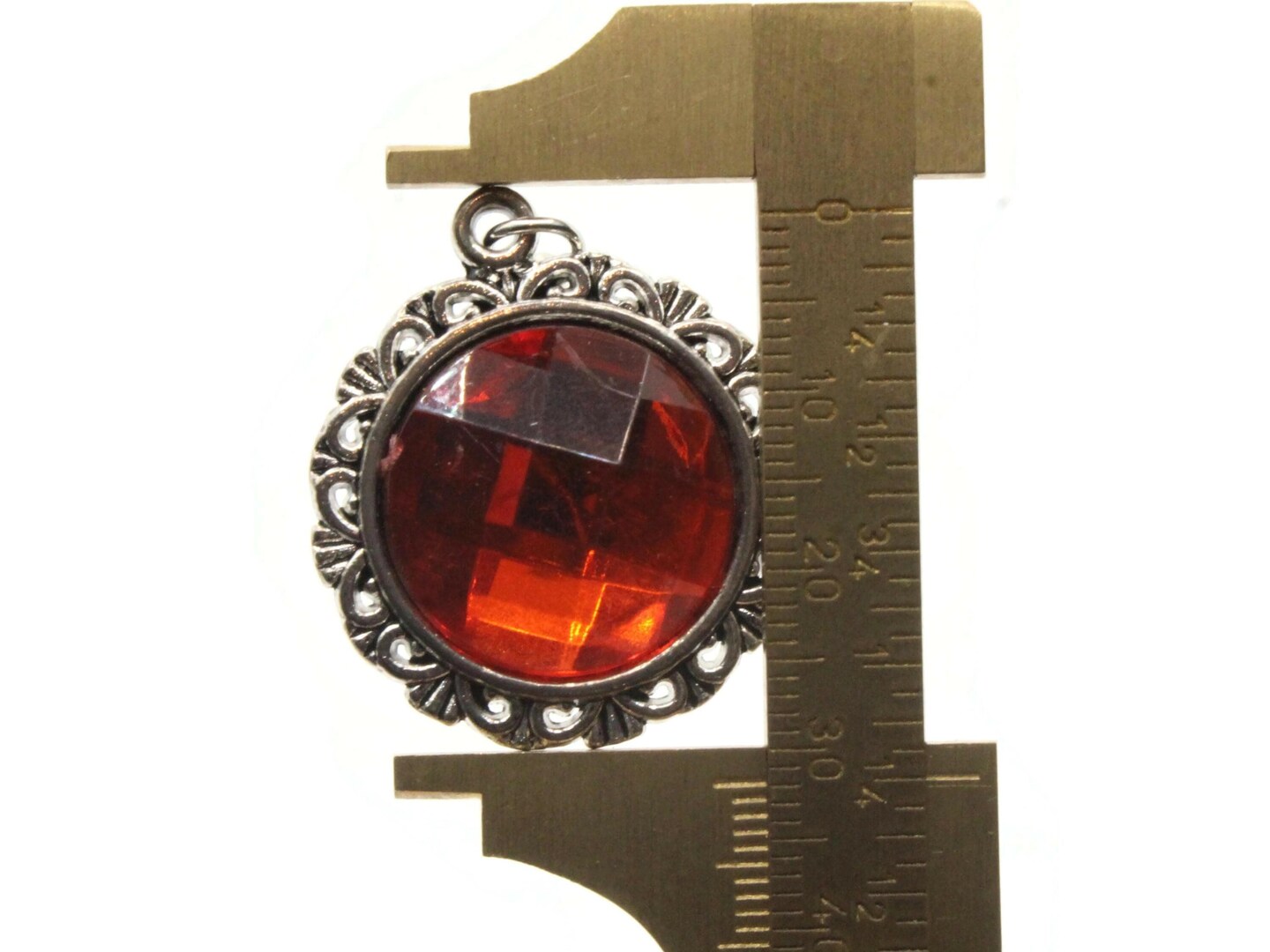 Red Rhinestone Large Framed Resin and Silver Metal Pendant