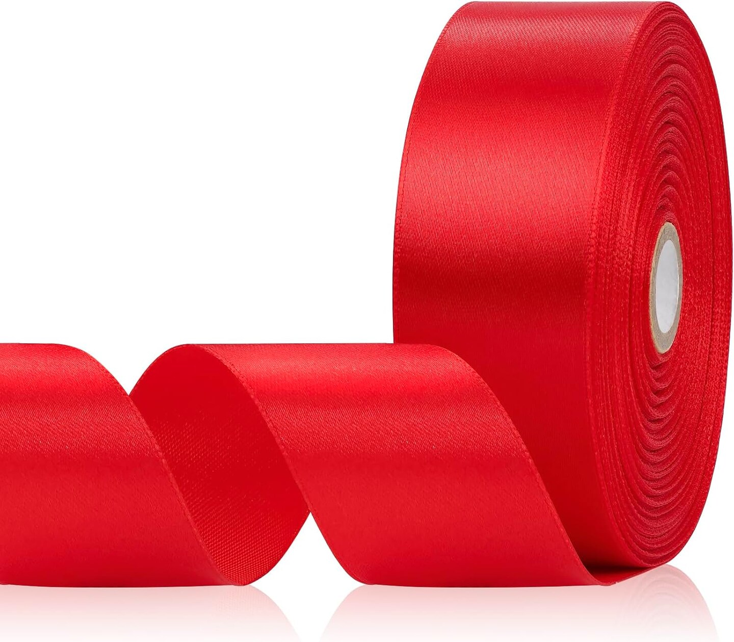 Red Ribbon 1-1/2 Inch x 60 Yards, Red Satin Ribbon for Gift Wrapping, Flower Bouquet, Crafts, Handmade Roses, Christmas, Wedding and Hair Accessories
