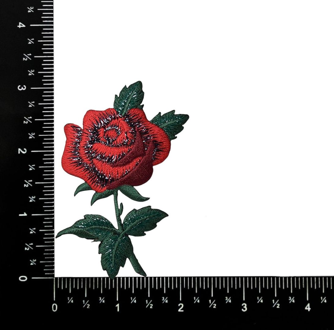 Red Rose, Flowers, Embroidered, Iron on Patch