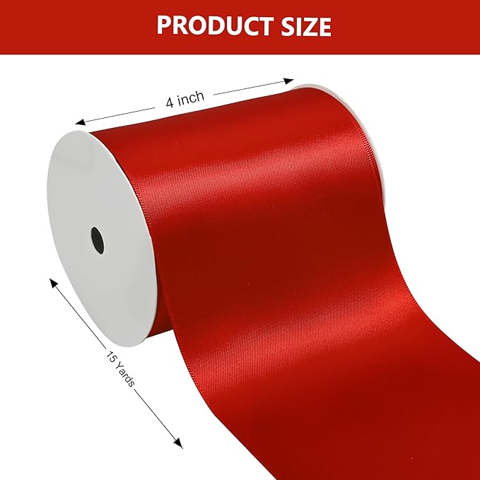 Red Satin Ribbon 4 Inch X 15 Yards Solid Color Double Faced Ribbons Perfect for Crafts Wedding Decor Bow Making Arts Sewing and More