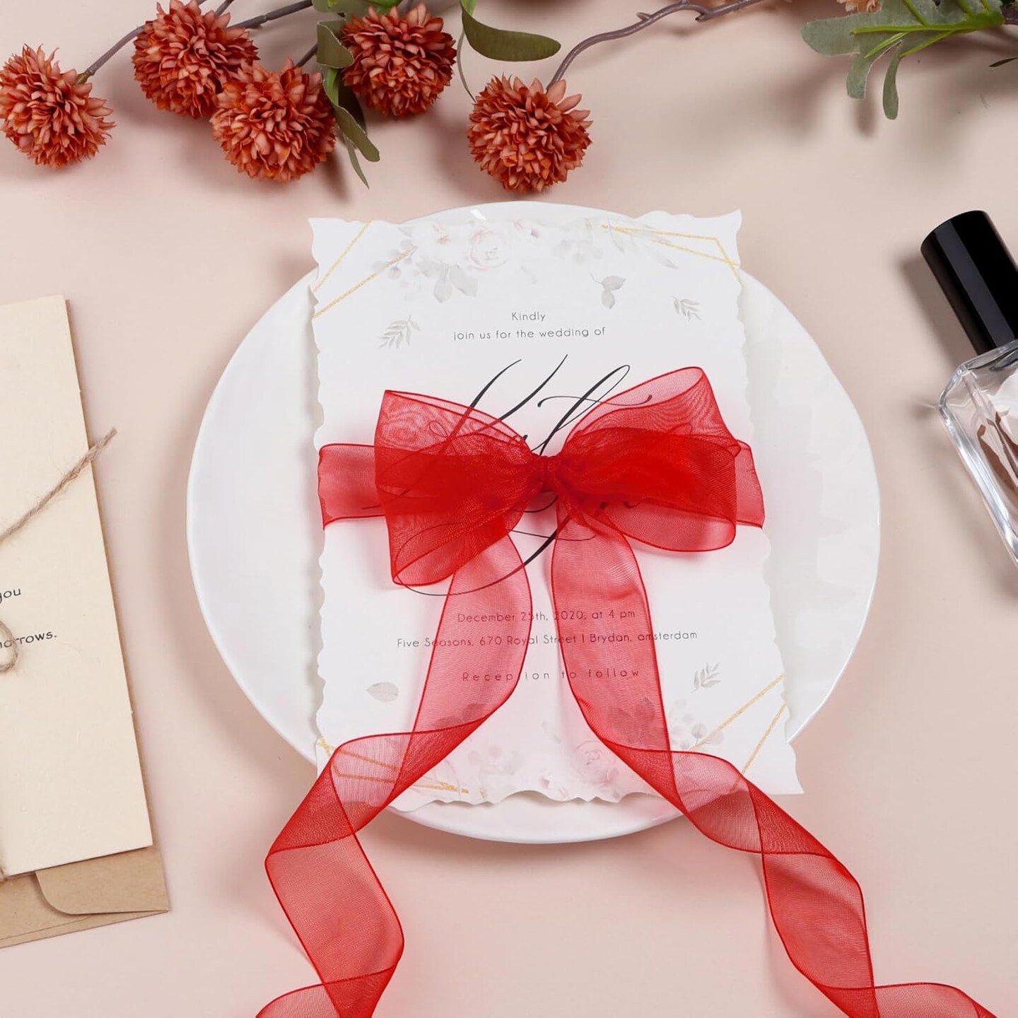 Red Sheer Organza Ribbon for Flower Bouquet Tulle Thin Chiffon Ribbons
