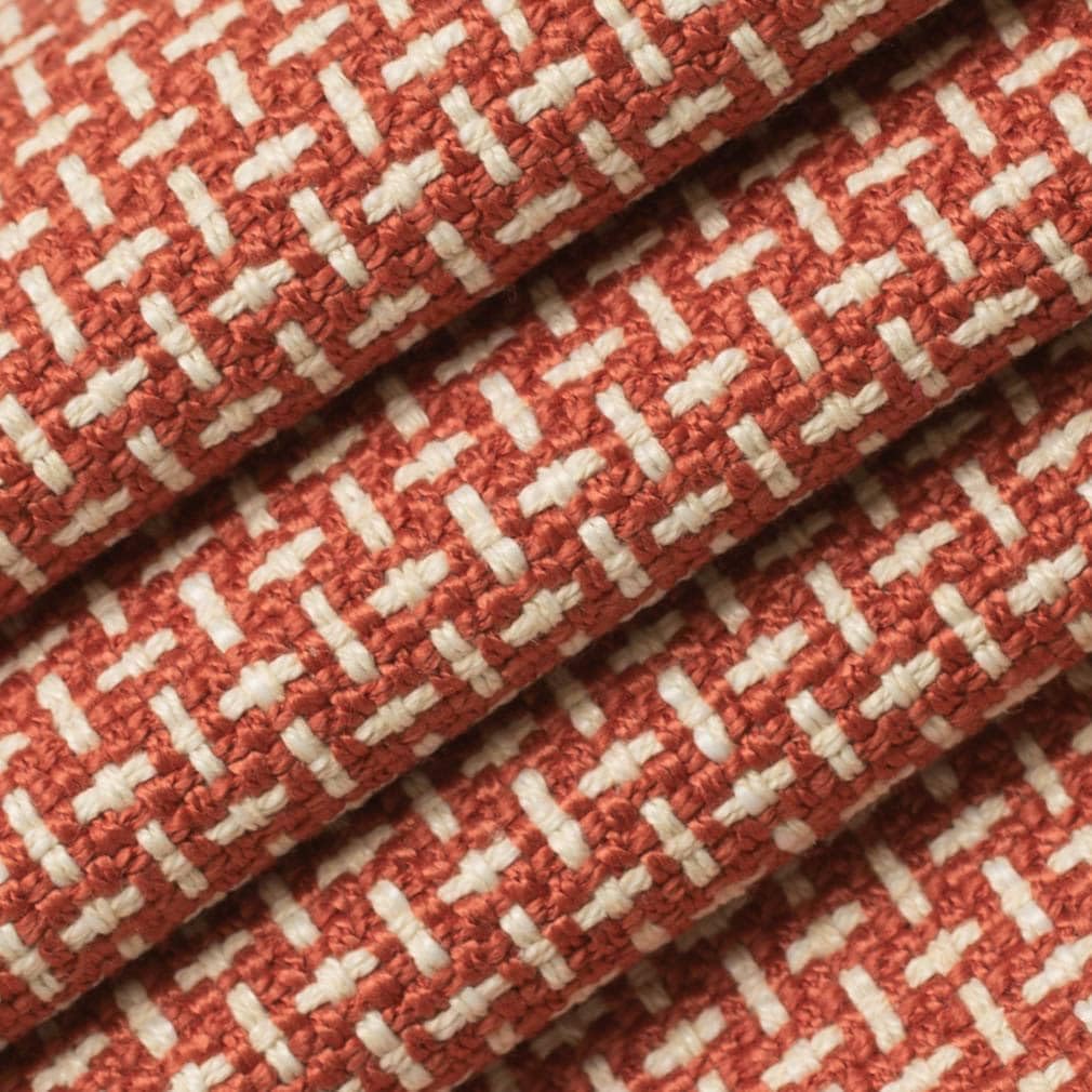 Red Small Scale Geometric Woven Pattern Upholstery Fabric by The Yard - SKU: Fairfax Papaya
