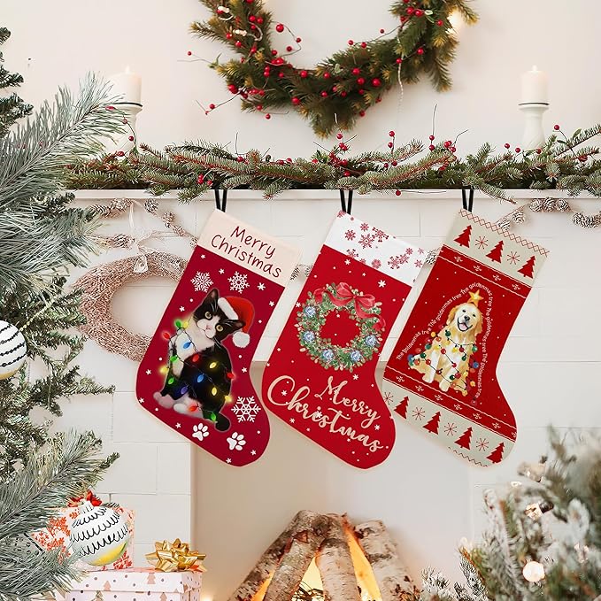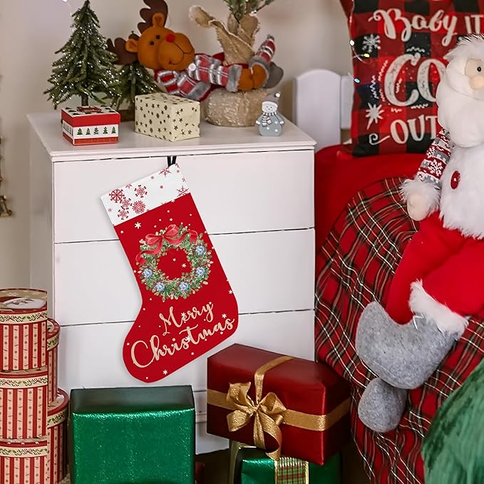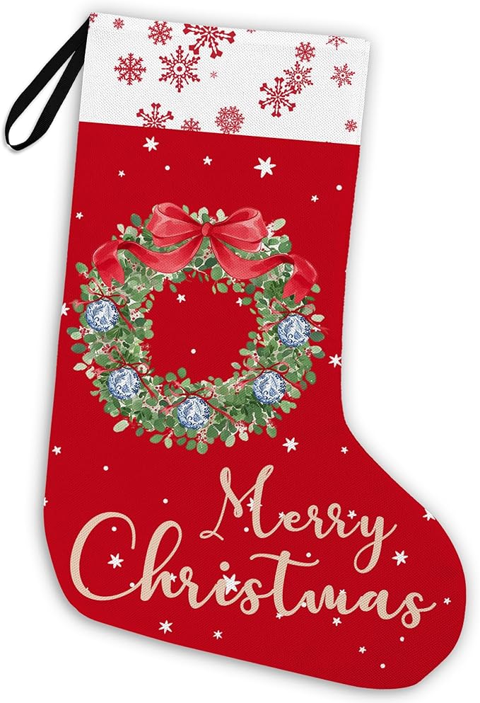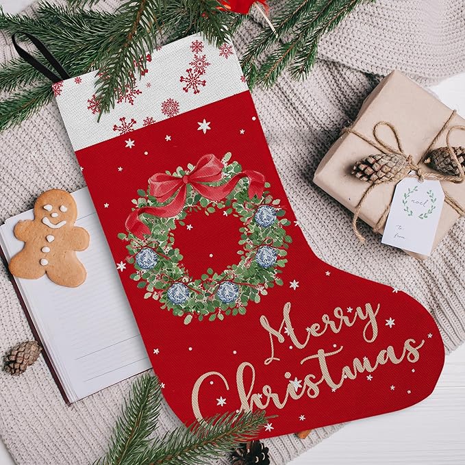 Red Snowflake Christmas Stocking 18 Inches, Chinoiserie Wreath Christmas Decor, Red Xmas Stockings, Hanging Christmas Stockings for Girls Family, Fireplace Christmas Tree Decorations