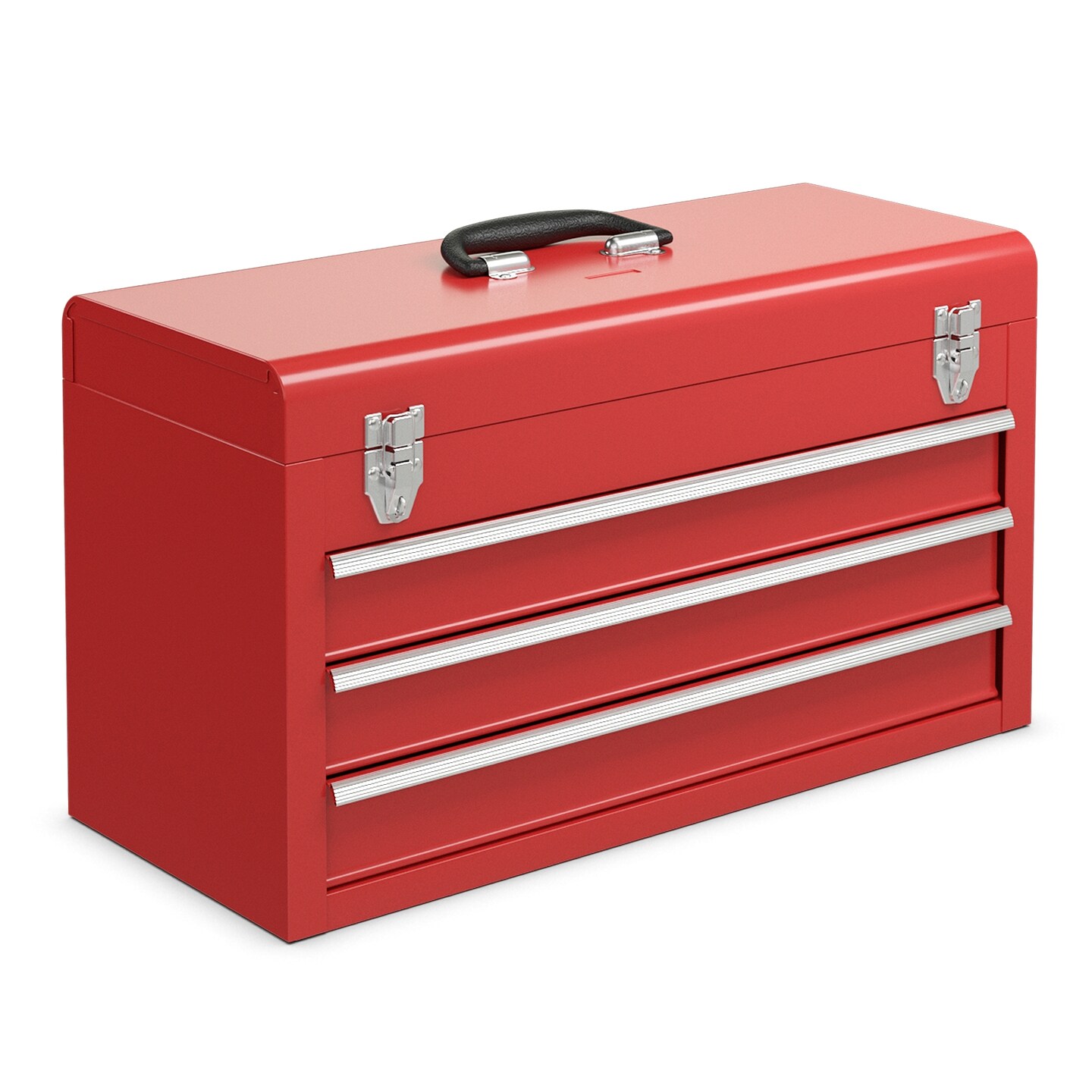 Red Steel 3-Drawer Portable Tool Chest with Keys and Ball Bearing Slides