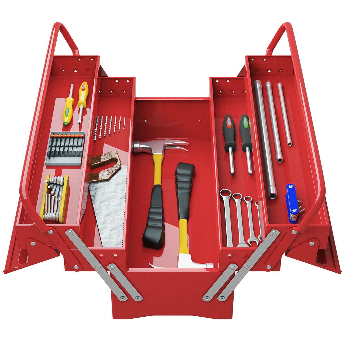 Red Steel 5-Tray Cantilever Toolbox 66 lbs Capacity with Portable Handle