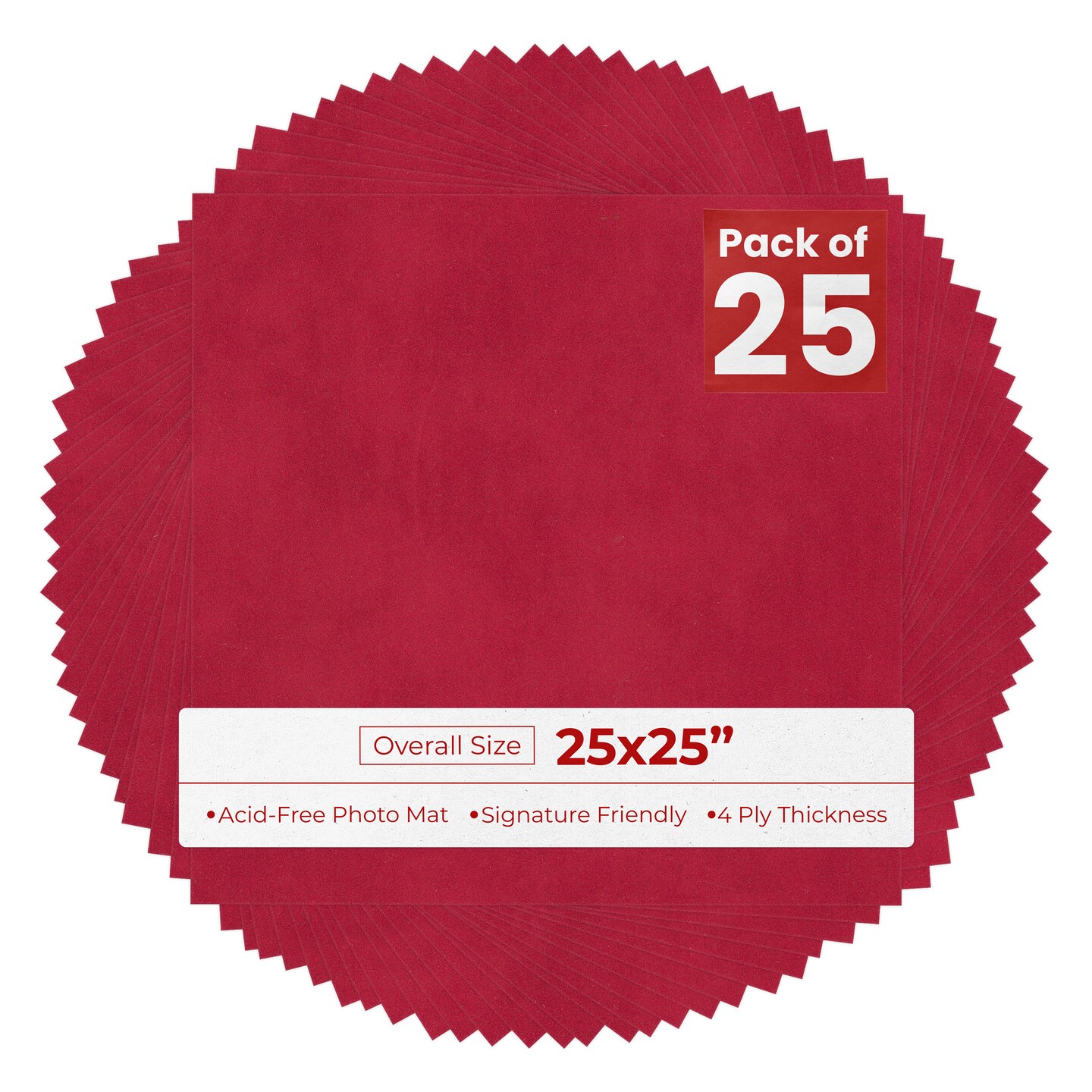 Red Suede 25x25 Uncut Mat Board - Blank Sheets, No Opening