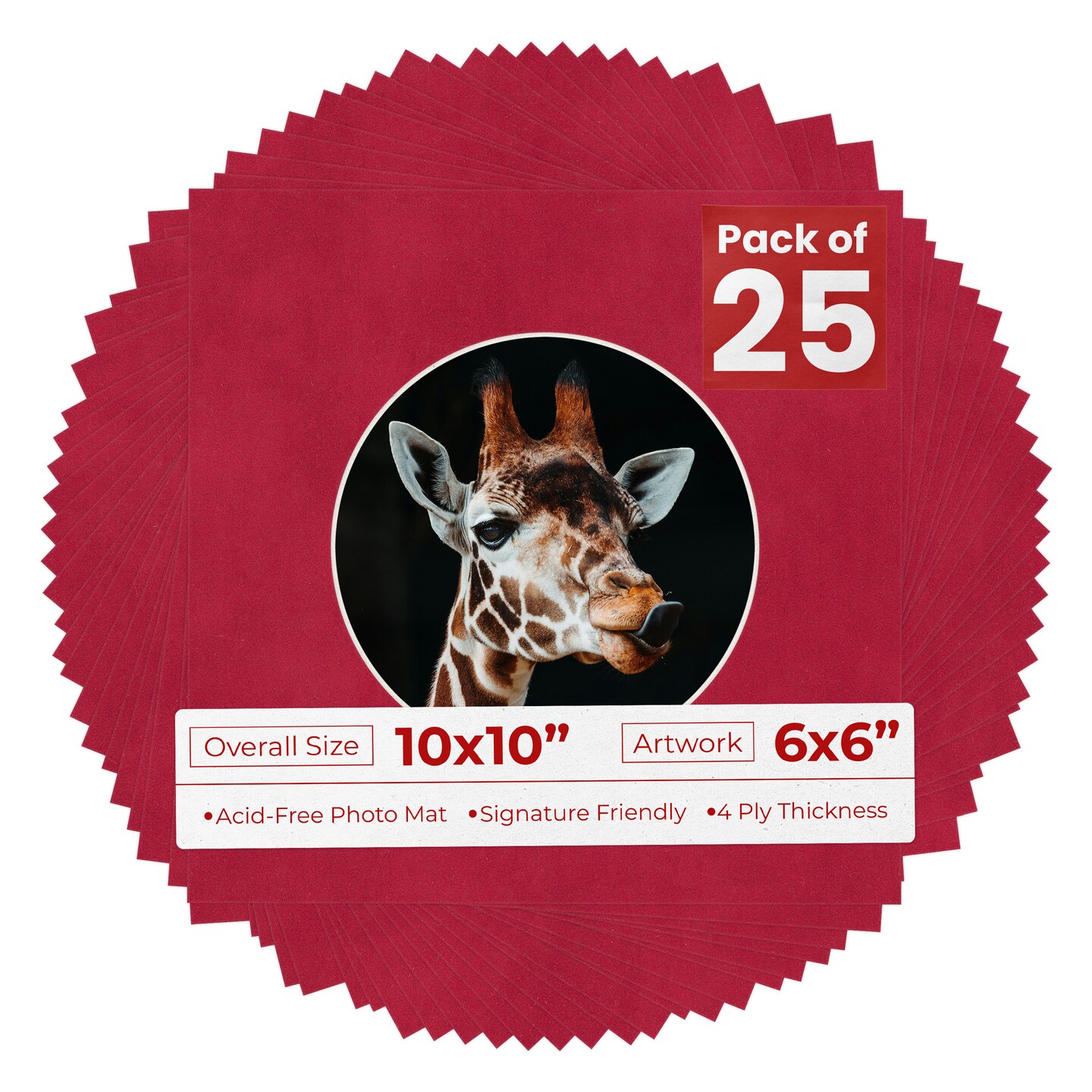 Red Suede Mat Board for 10x10 Frames - Circle Opening for 6x6 Photos