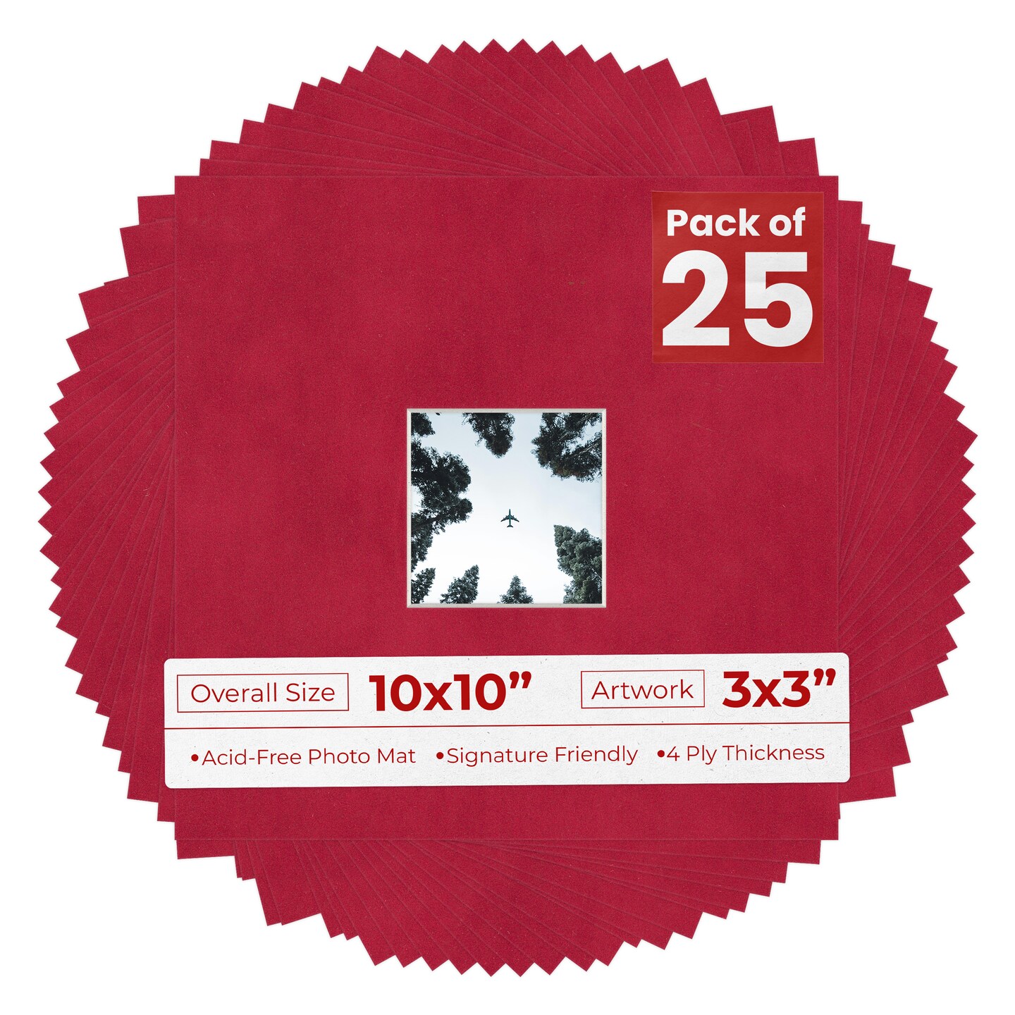 Red Suede Mat Board for 10x10 Frames - Fits 3x3 Photos