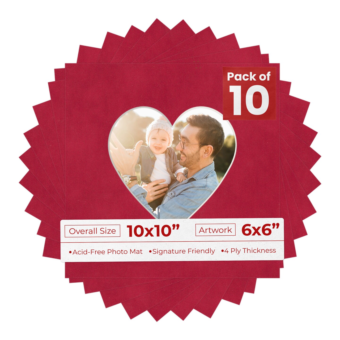 Red Suede Mat Board for 10x10 Frames - Heart Opening for 6x6 Photos