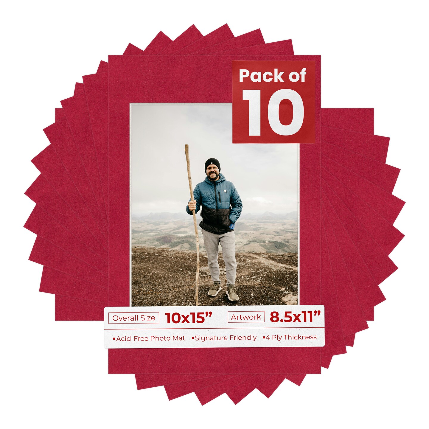 Red Suede Mat Board for 10x15 Frames - Fits 8.5x11 Photos