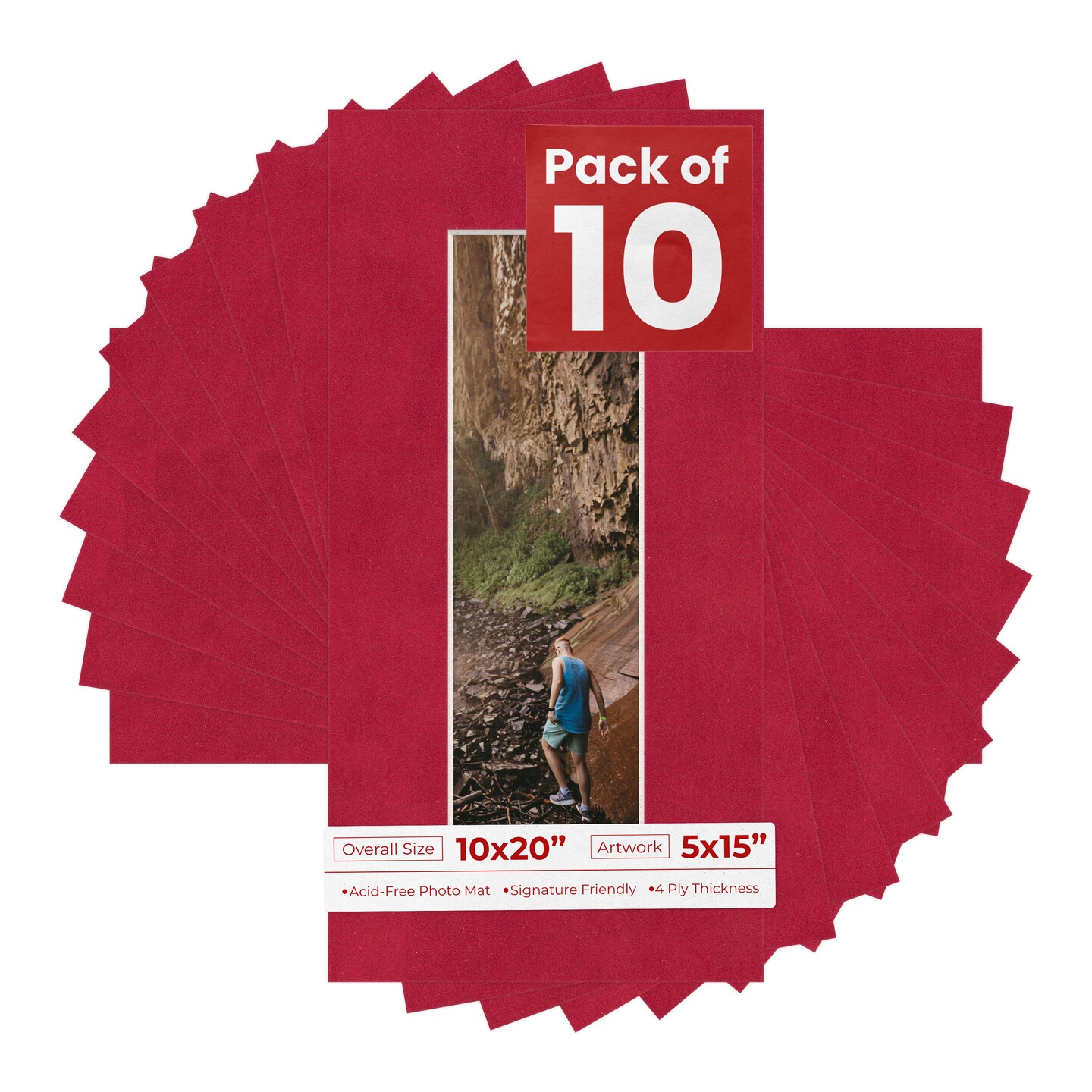 Red Suede Mat Board for 10x20 Frames - Fits 5x15 Photos