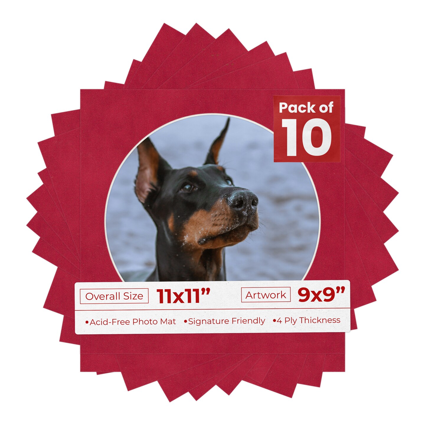 Red Suede Mat Board for 11x11 Frames - Circle Opening for 9x9 Photos