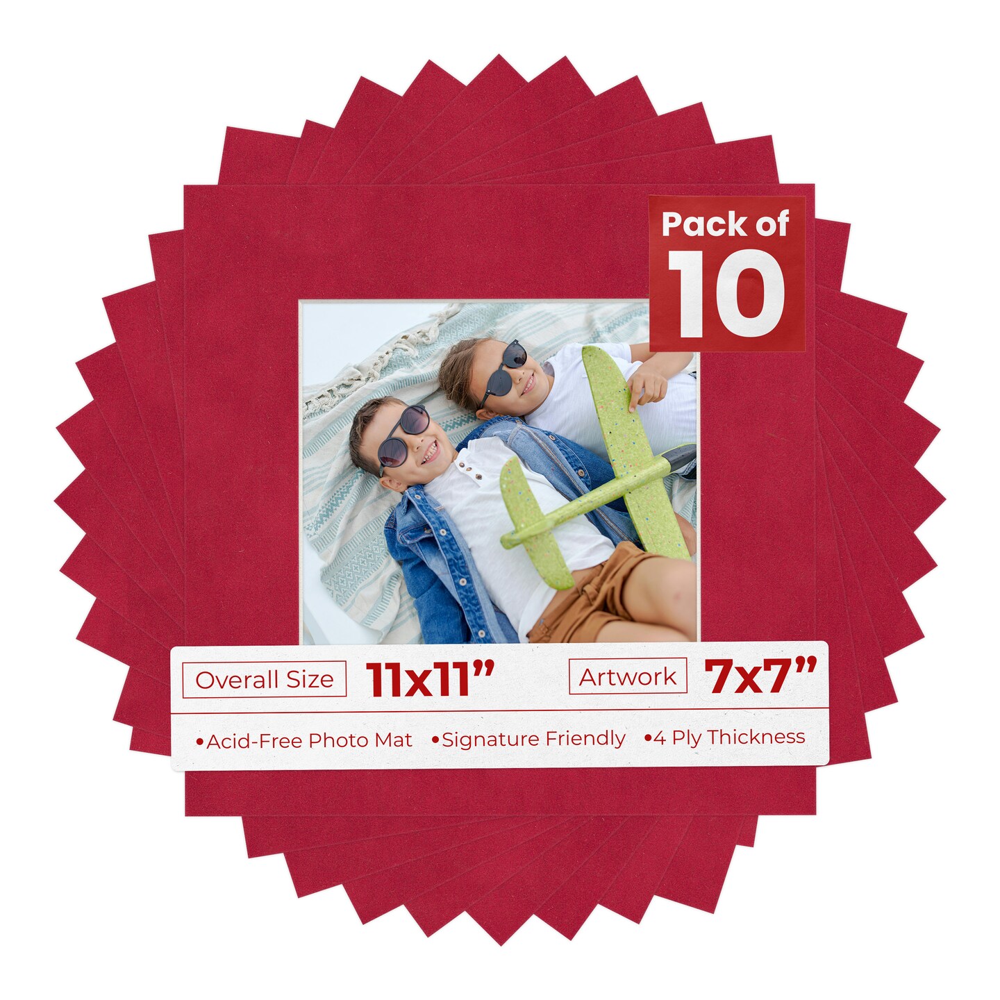 Red Suede Mat Board for 11x11 Frames - Fits 7x7 Photos