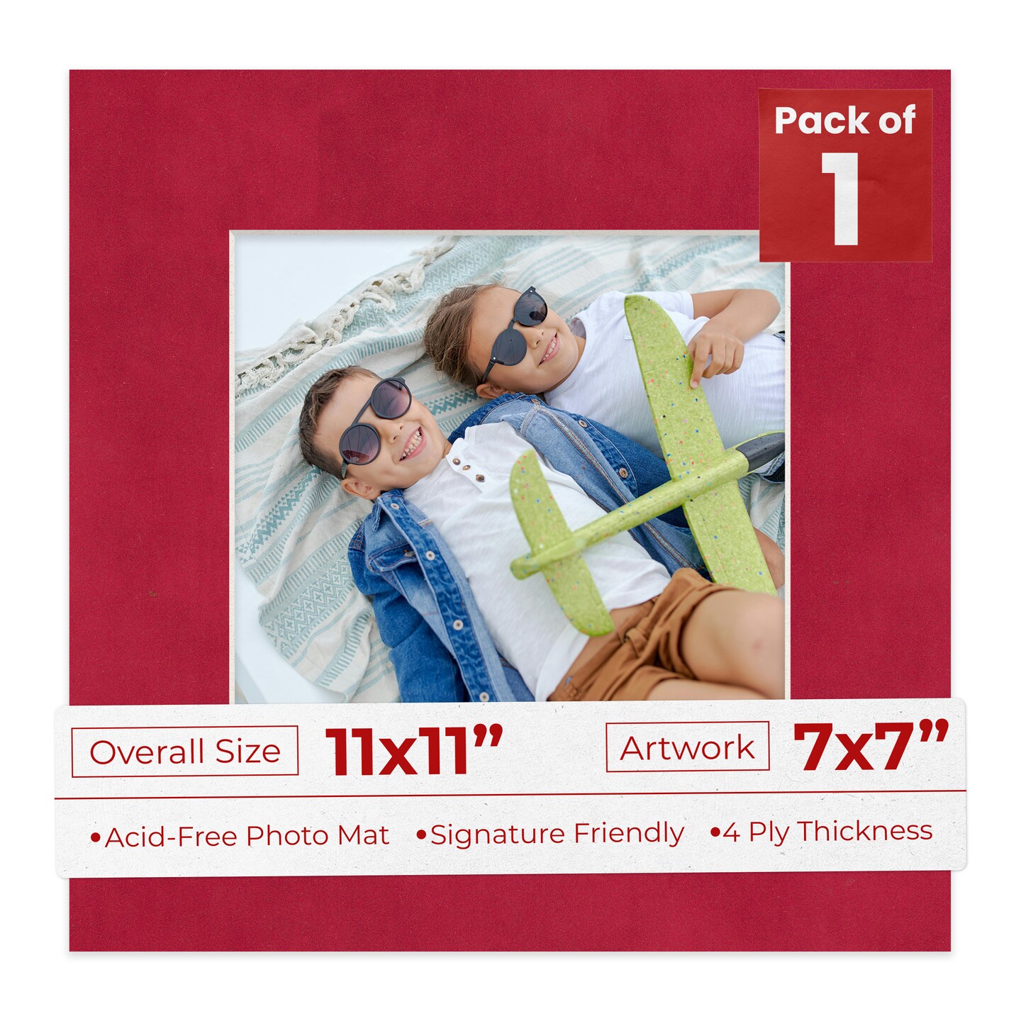 Red Suede Mat Board for 11x11 Frames - Fits 7x7 Photos