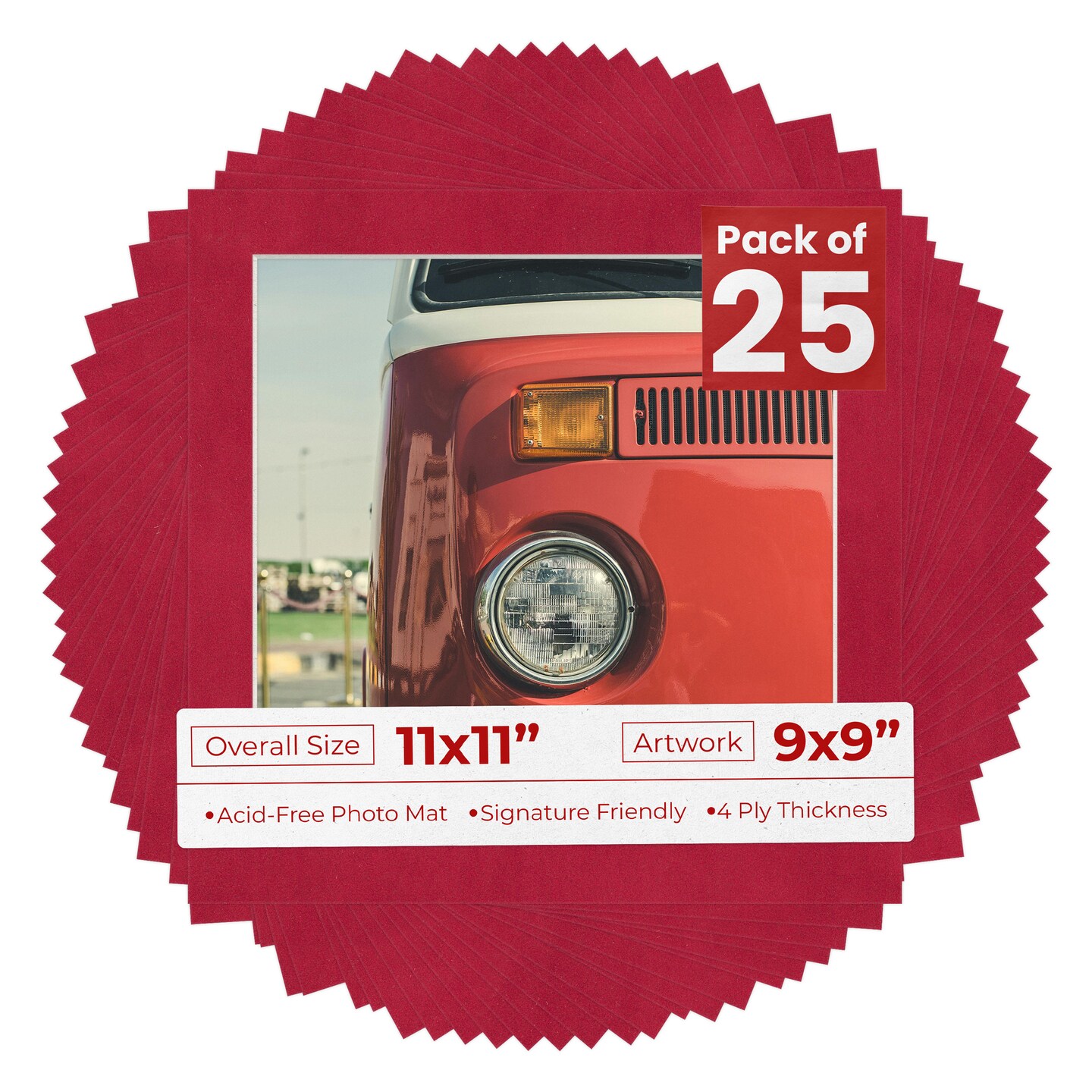 Red Suede Mat Board for 11x11 Frames - Fits 9x9 Photos