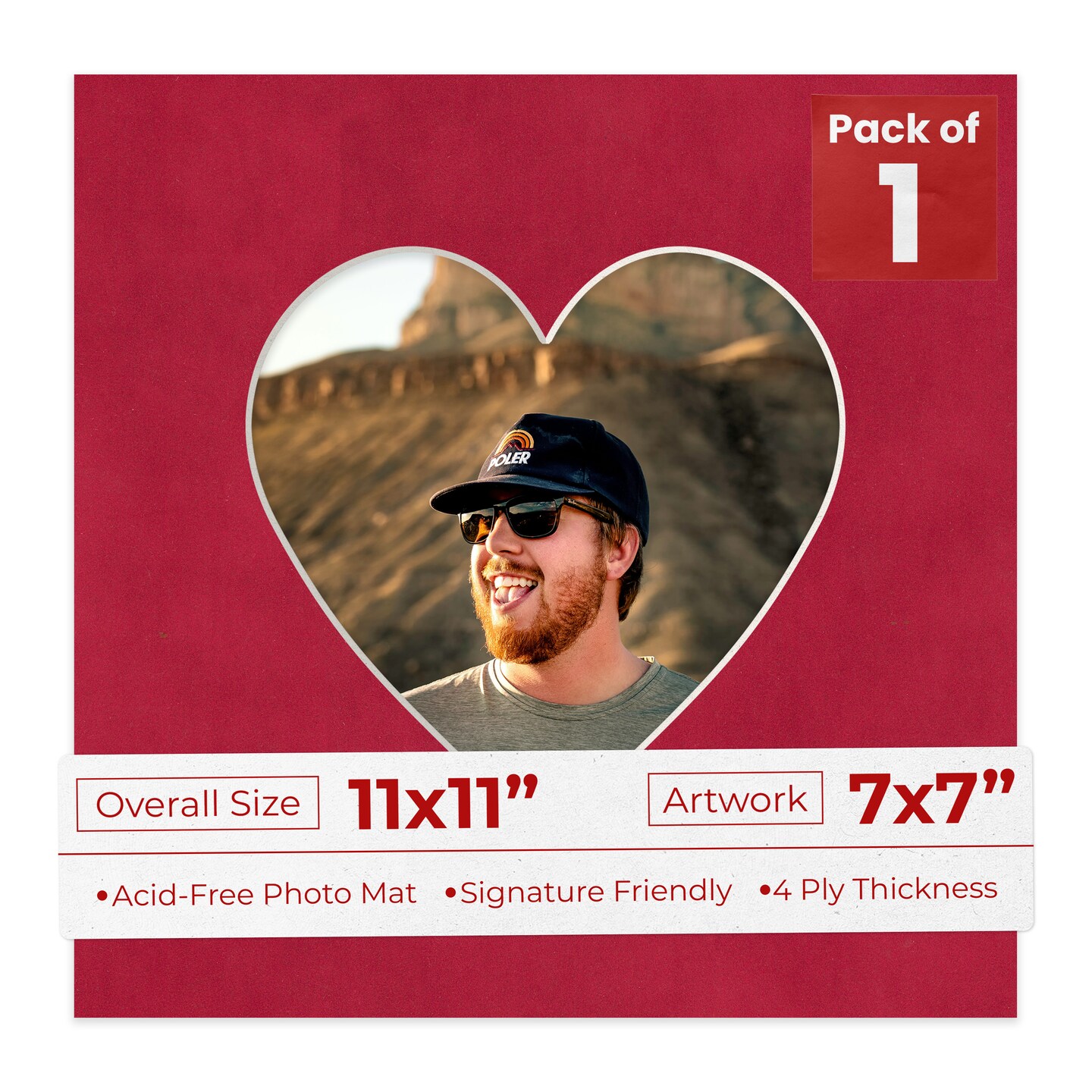 Red Suede Mat Board for 11x11 Frames - Heart Opening for 7x7 Photos