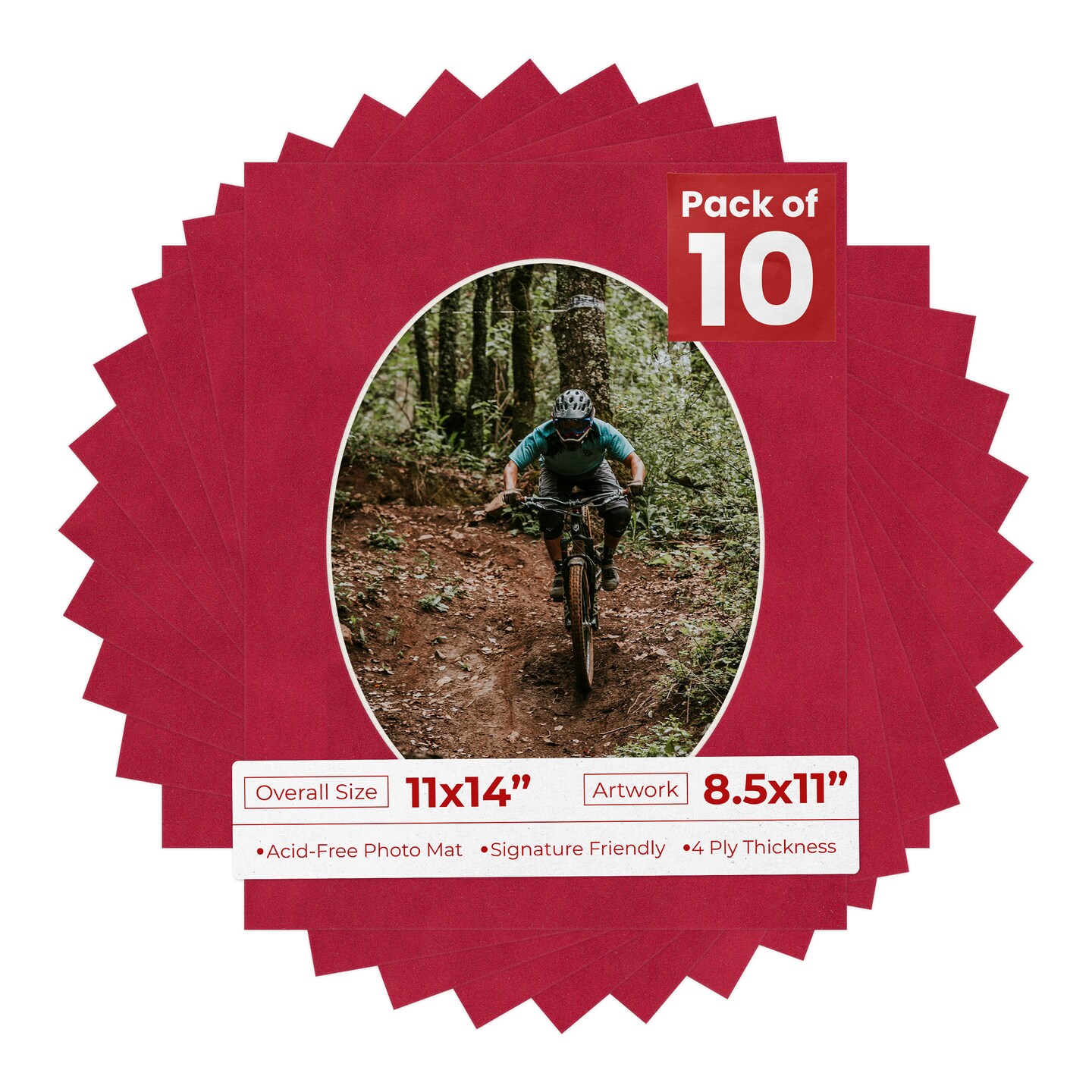 Red Suede Mat Board for 11x14 Frames - Oval Opening for 8.5x11 Photos