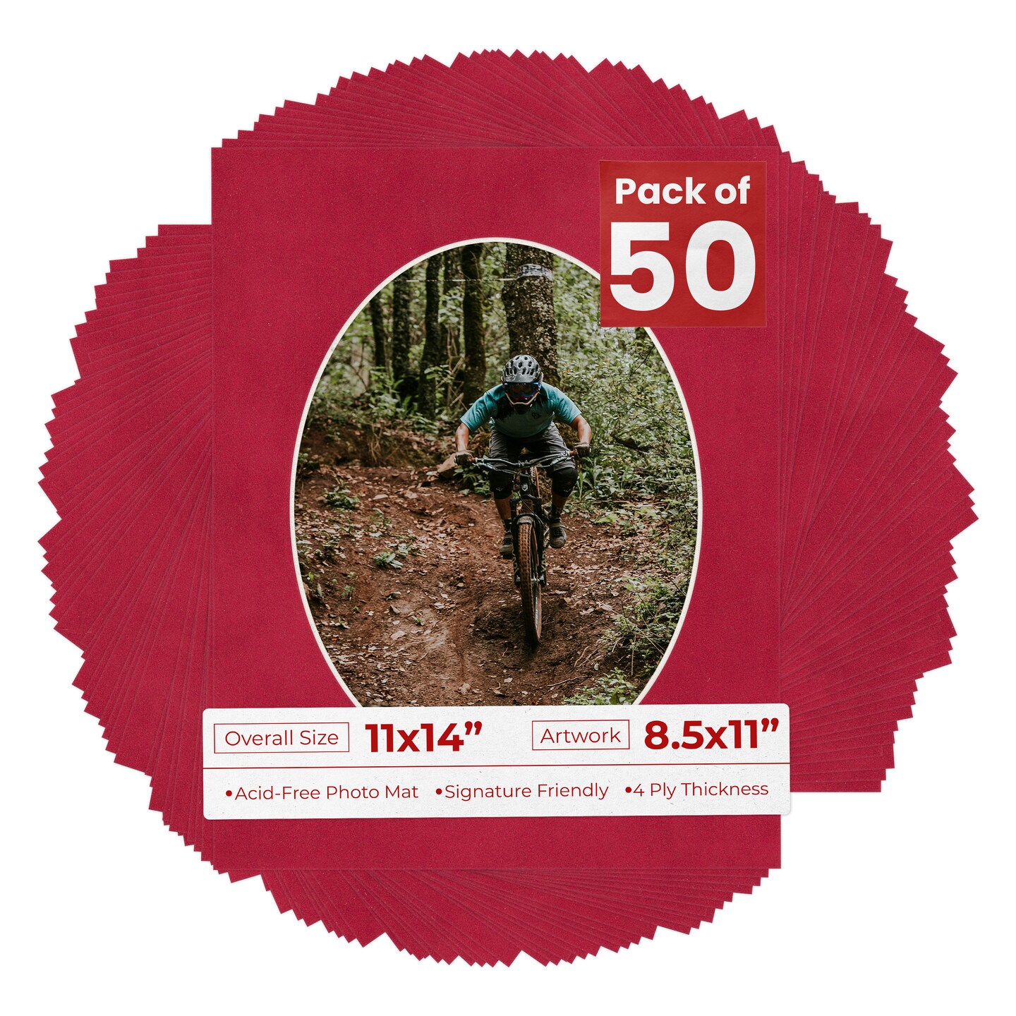 Red Suede Mat Board for 11x14 Frames - Oval Opening for 8.5x11 Photos