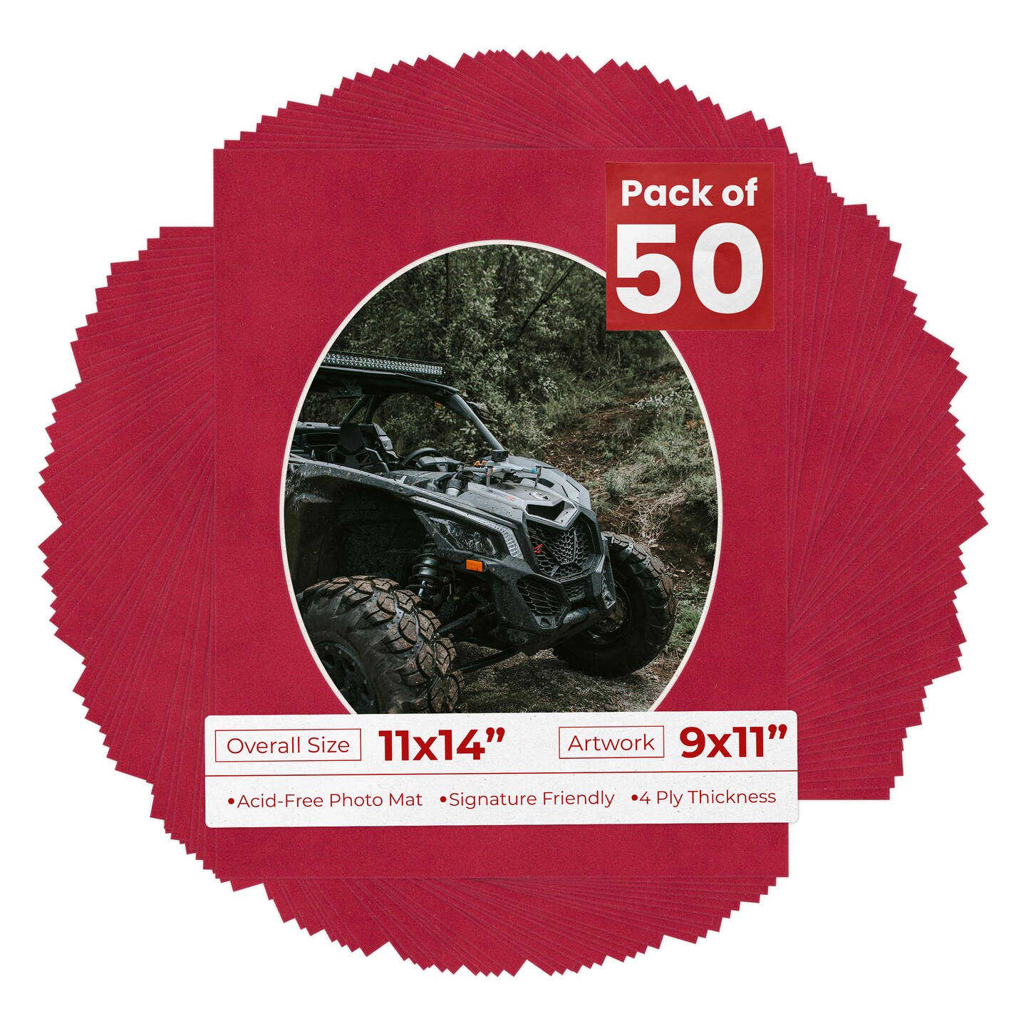 Red Suede Mat Board for 11x14 Frames - Oval Opening for 9x11 Photos