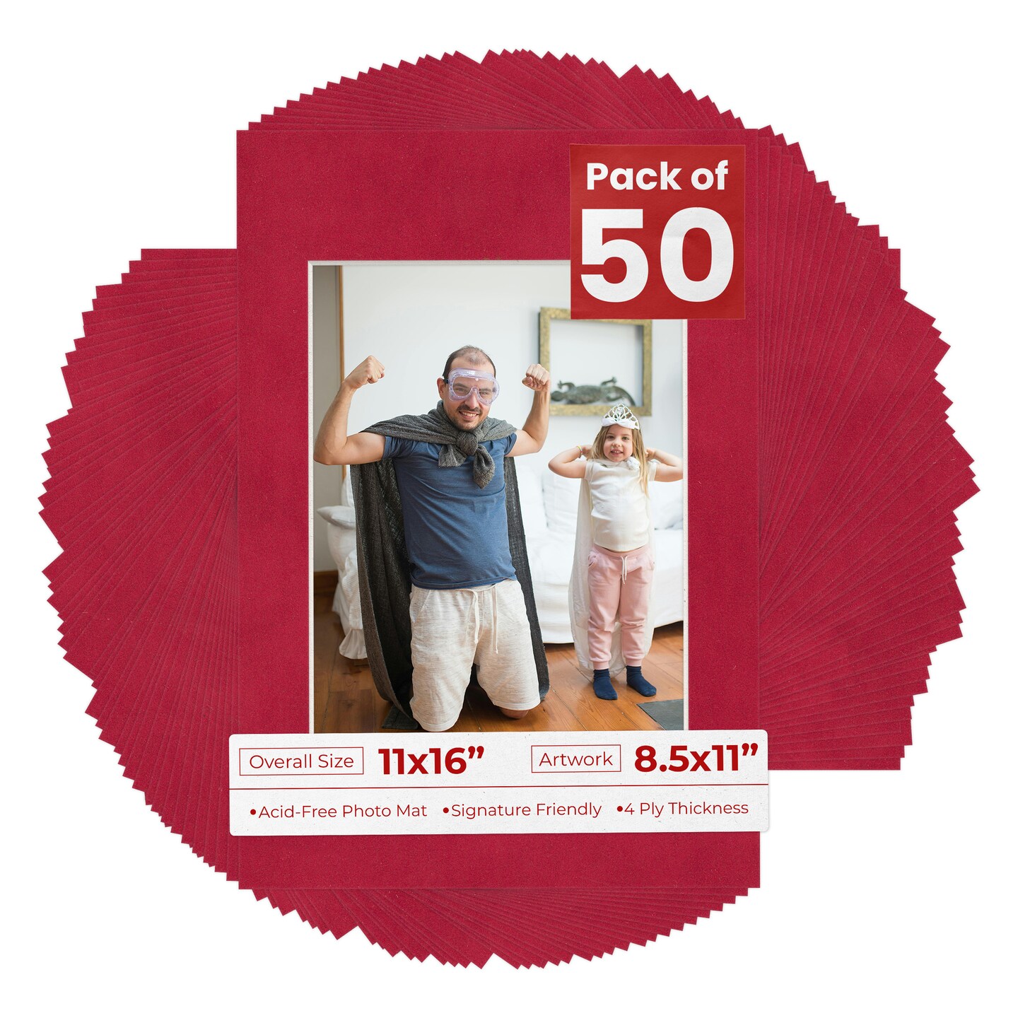 Red Suede Mat Board for 11x16 Frames - Fits 8.5x11 Photos