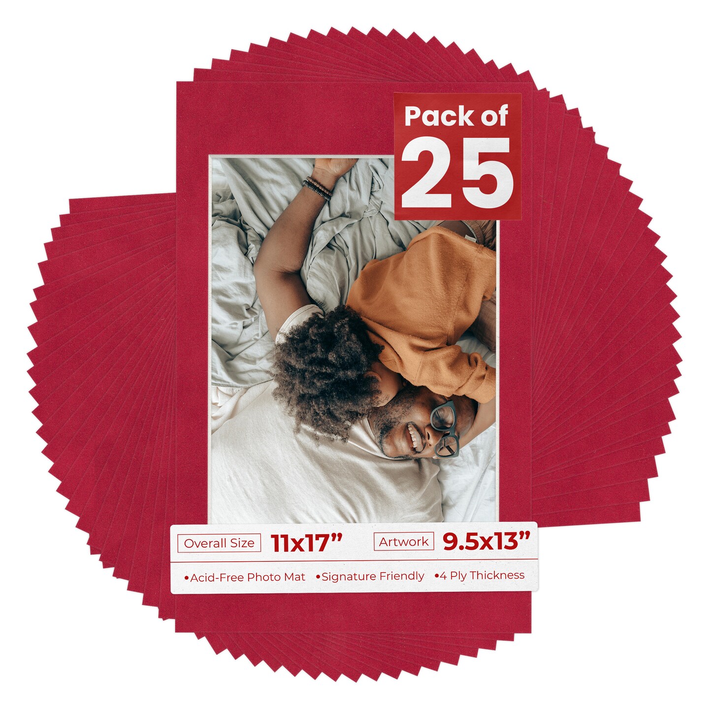 Red Suede Mat Board for 11x17 Frames - Fits 9.5x13 Photos