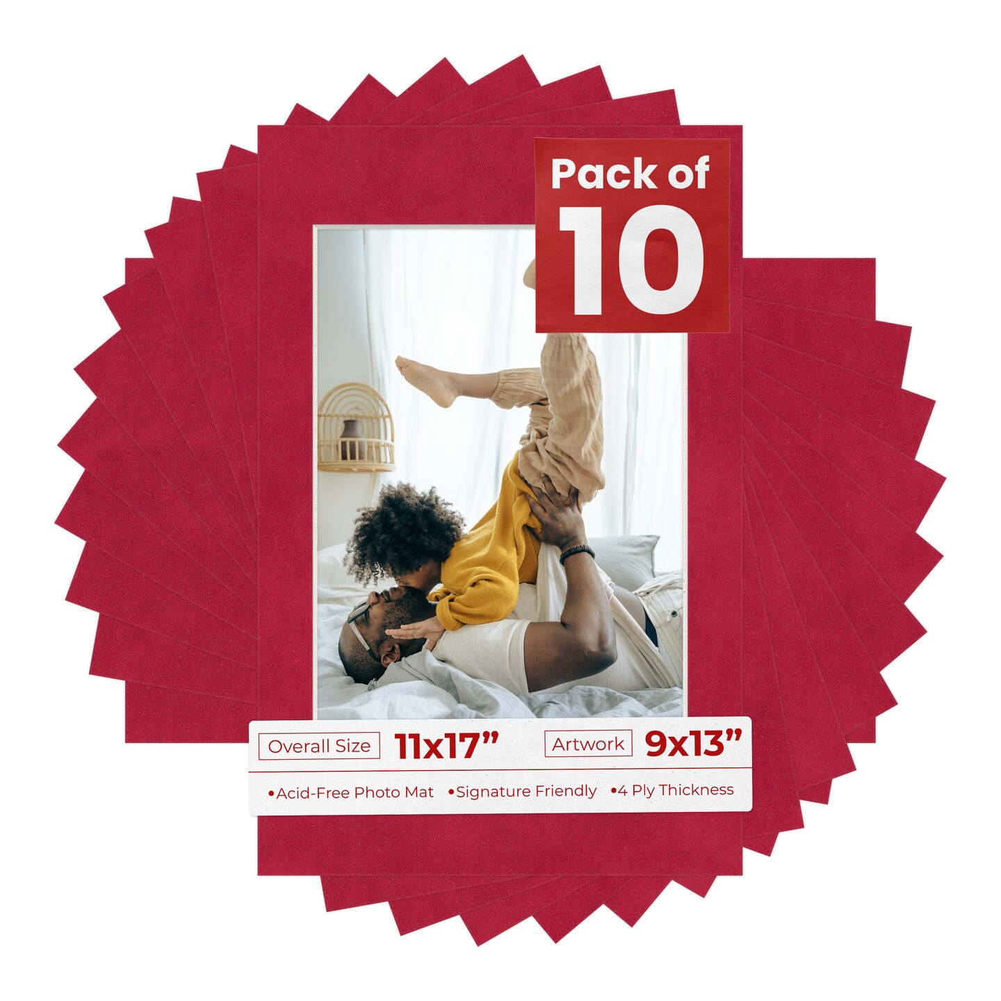 Red Suede Mat Board for 11x17 Frames - Fits 9x13 Photos