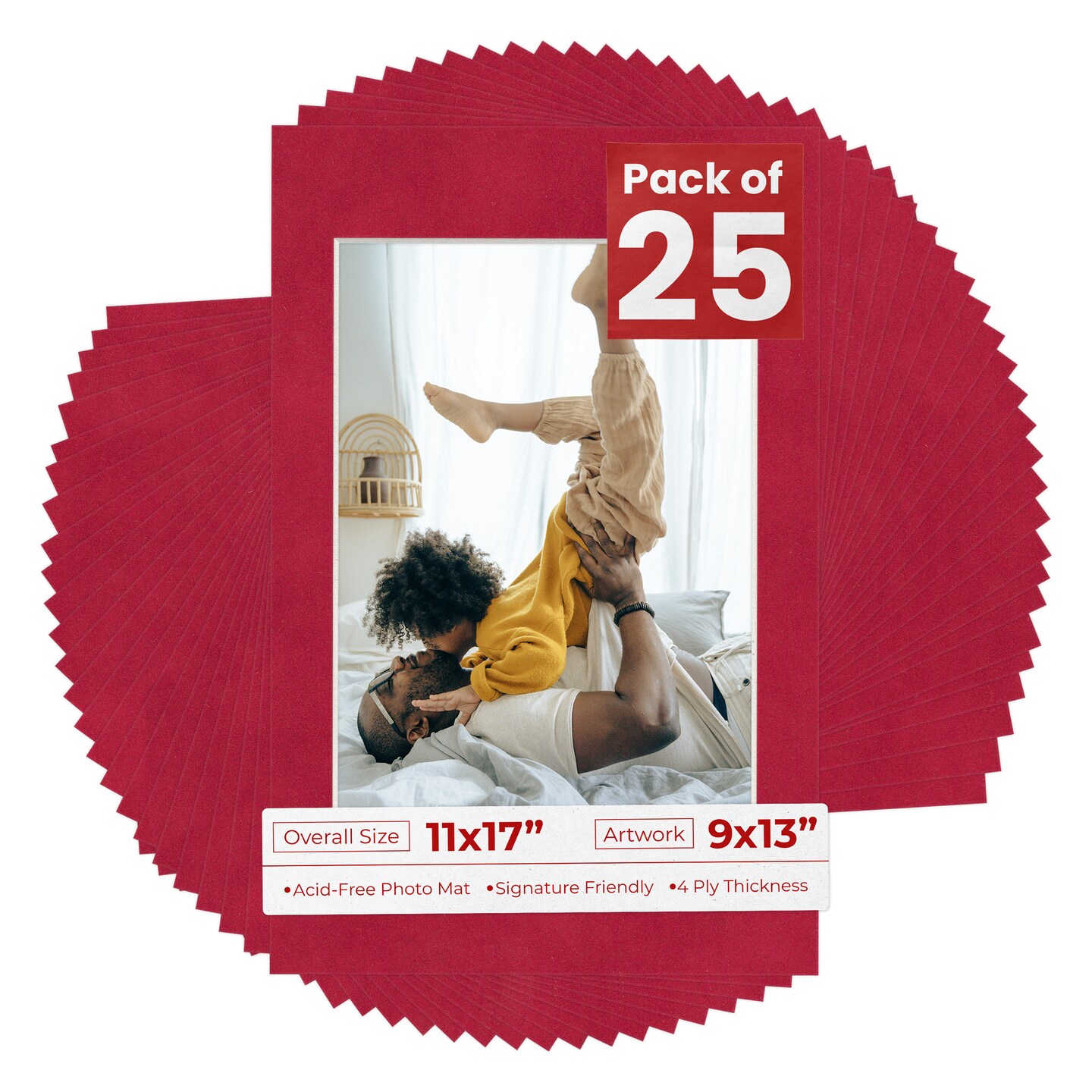 Red Suede Mat Board for 11x17 Frames - Fits 9x13 Photos