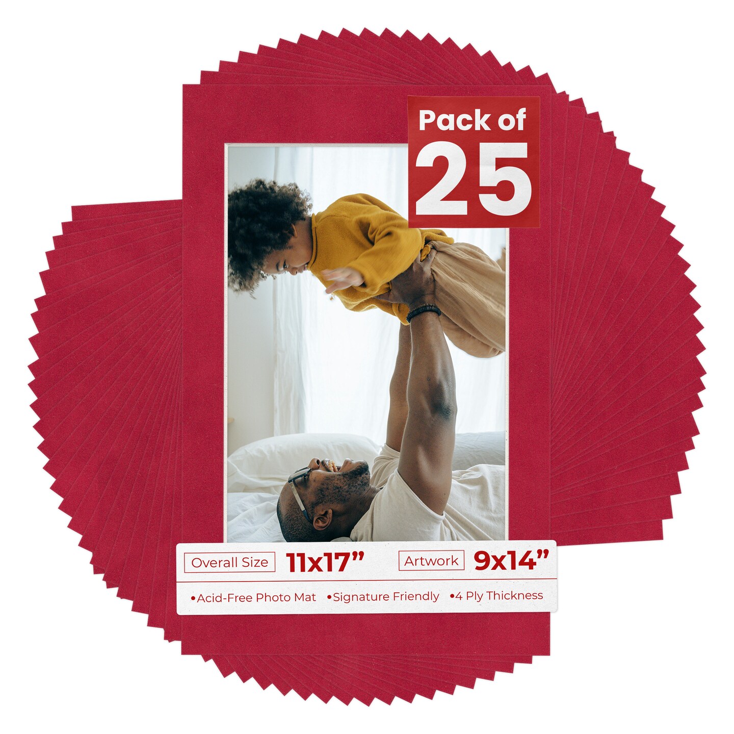 Red Suede Mat Board for 11x17 Frames - Fits 9x14 Photos