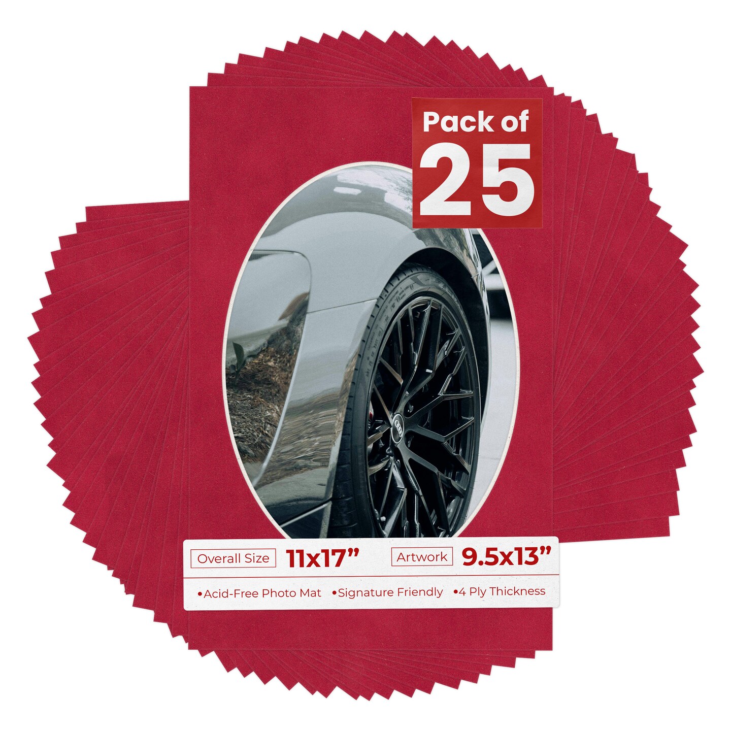 Red Suede Mat Board for 11x17 Frames - Oval Opening for 9.5x13 Photos