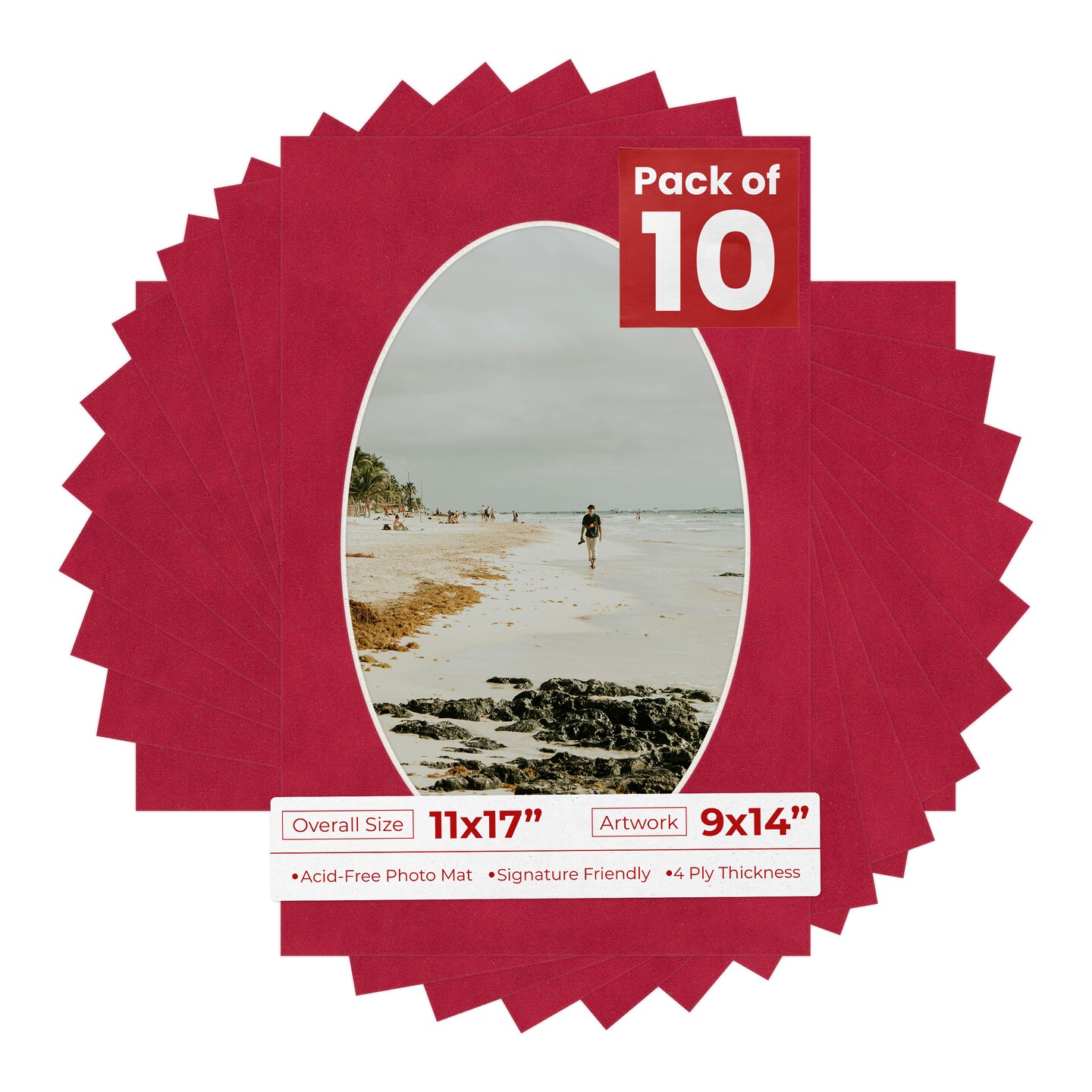 Red Suede Mat Board for 11x17 Frames - Oval Opening for 9x14 Photos