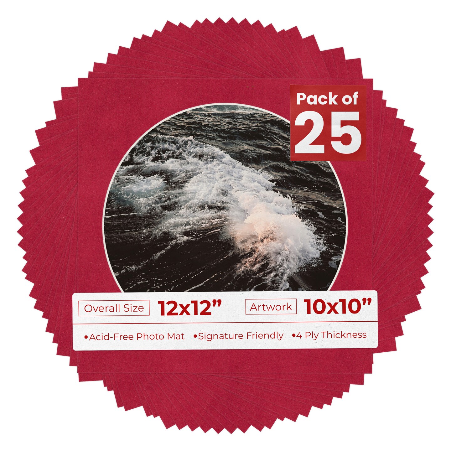 Red Suede Mat Board for 12x12 Frames - Circle Opening for 10x10 Photos